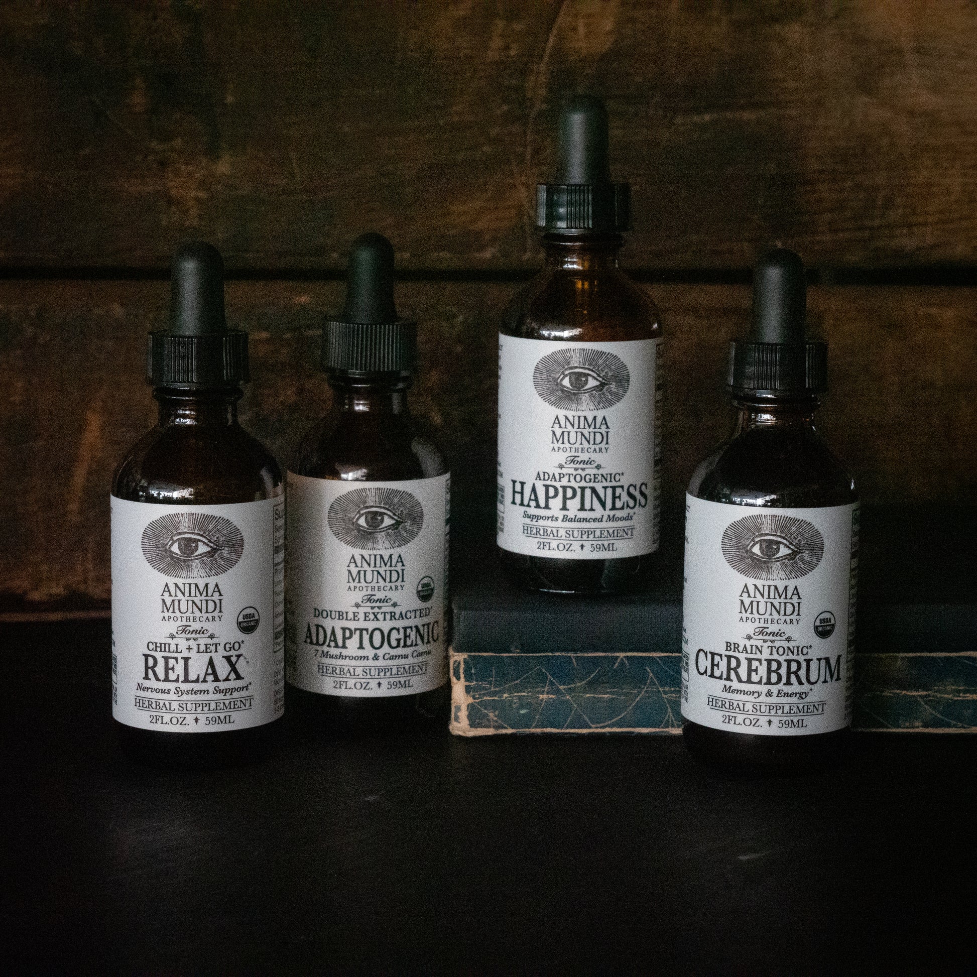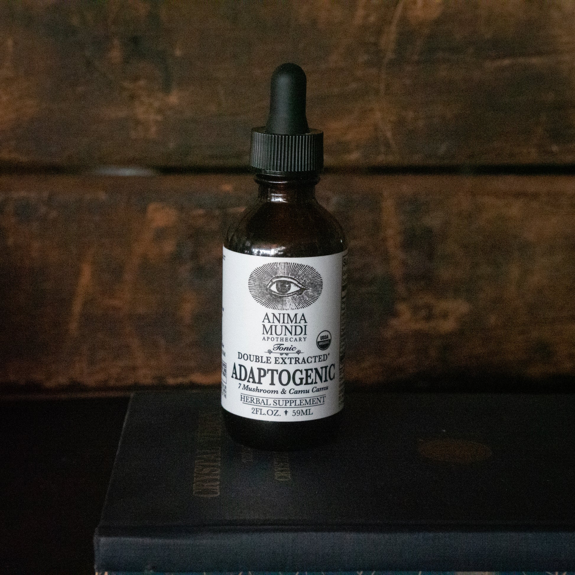 Anima Mundi's Adaptogenic Tonic contains double cell wall extracted mushrooms grown in Washington state, along with high vitamin C sources such as Camu Camu and Mangosteen, which is thought to help empower and rewire the immune system.
