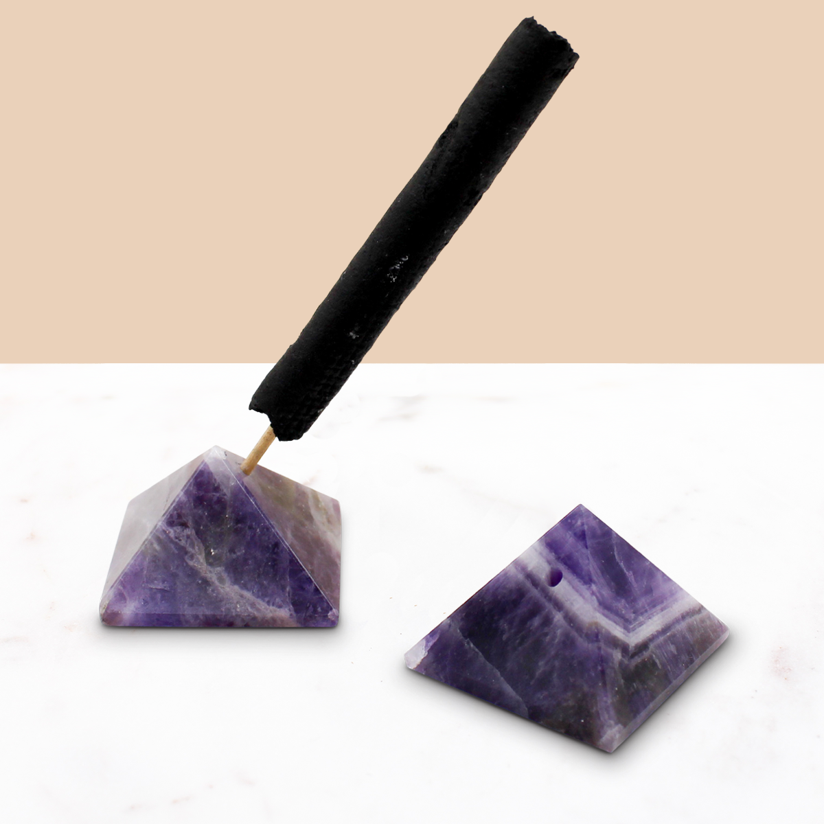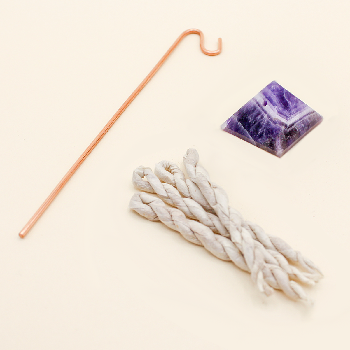Pyramid Incense Stand + Rope Set: Amethyst