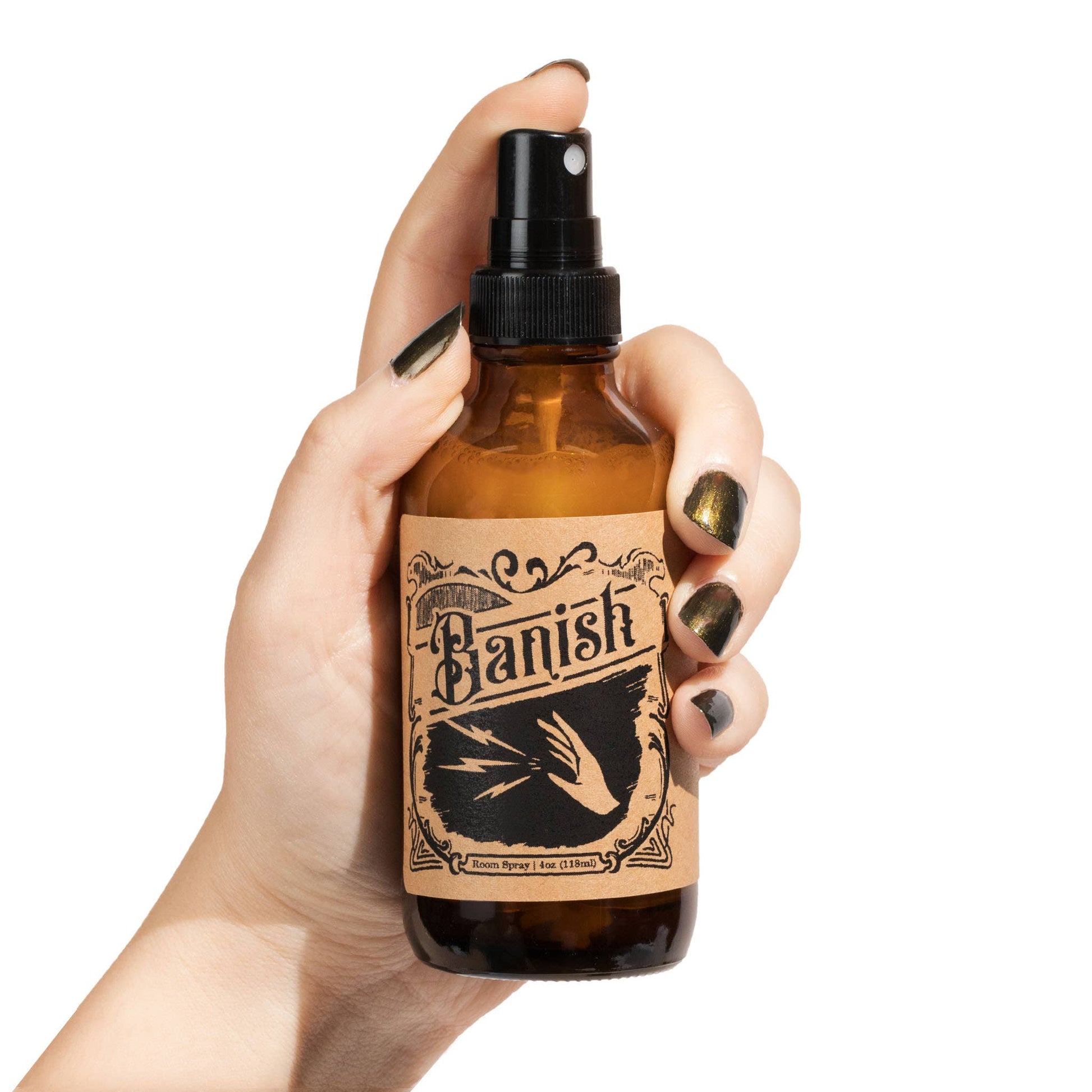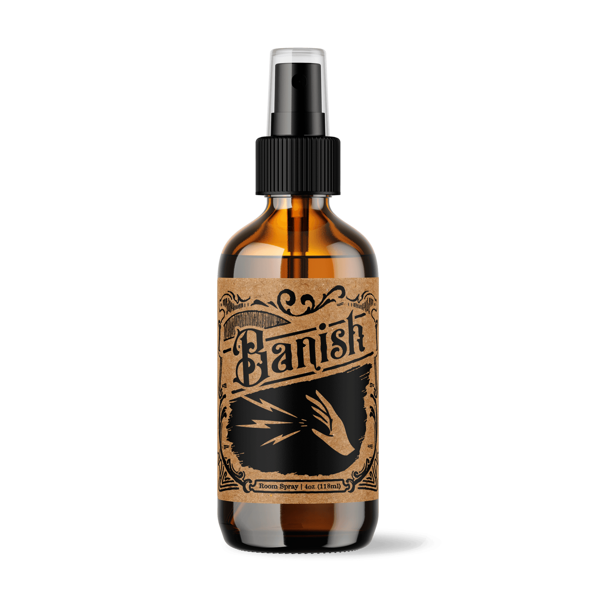 Banish Room+Linen Spray featuring Tobacco & Sweet Vanilla. Hand poured in Austin, TX.