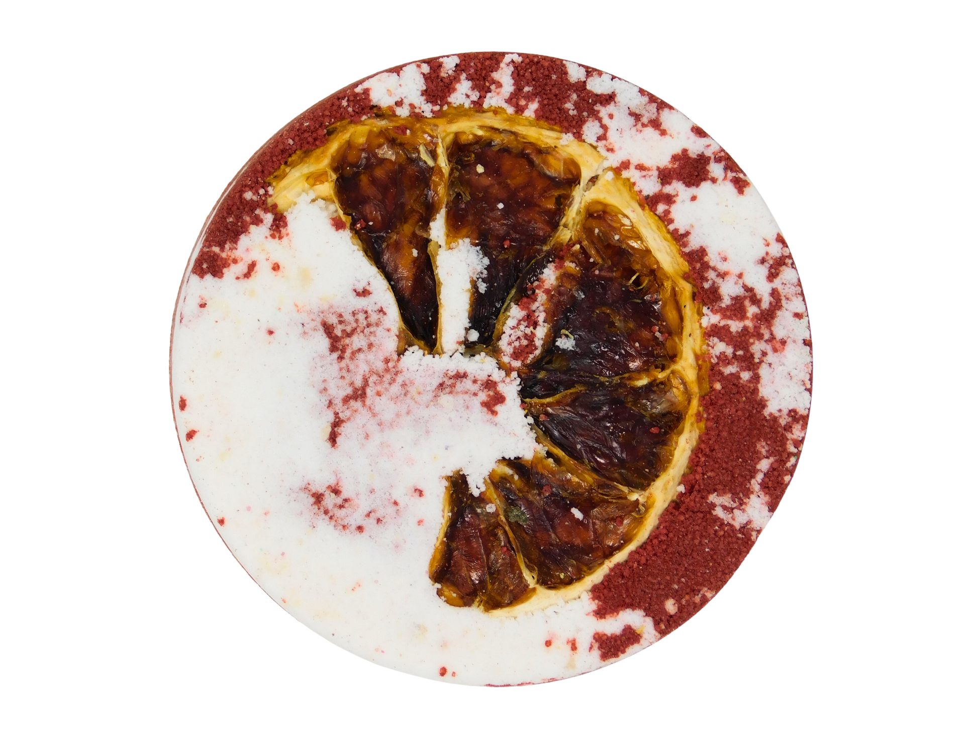 Ingredients: Sodium Bicarbonate, Citric Acid, Kaolin Clay, Cream of Tartar (Potassium Bitartrate), Sodium Lauryl Sulfoacetate, Water, Cocos Nucifera (Coconut) Oil, Fragrance (Phthalate Free), Glycerin, Red 40, Red 33, Citrus Sinensis (Blood Orange) Essential Oil, Dehydrated Coconut Milk (Organic Acacia Fiber, Organic Tapioca Maltodextrin (Derived from Organic Yuca Root))