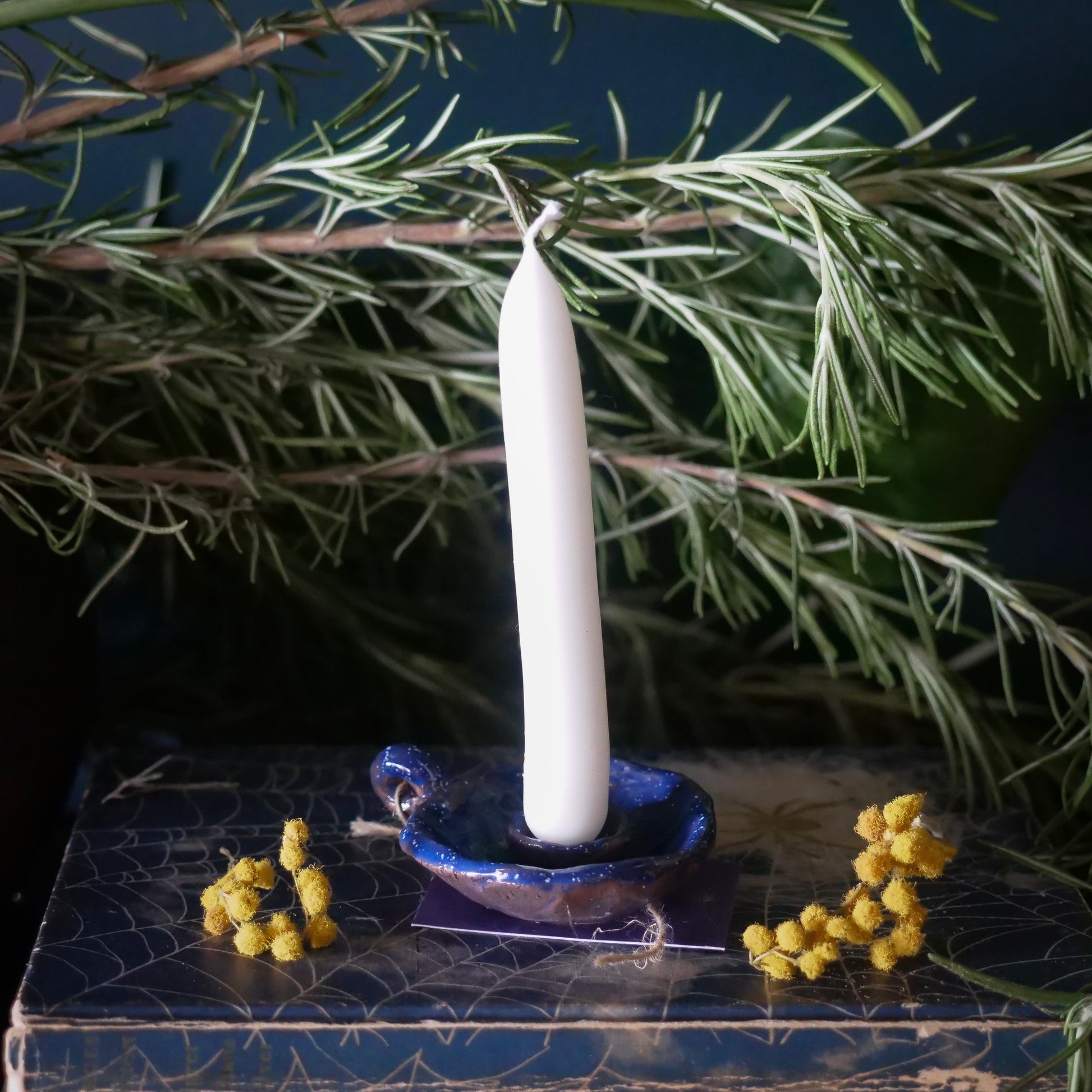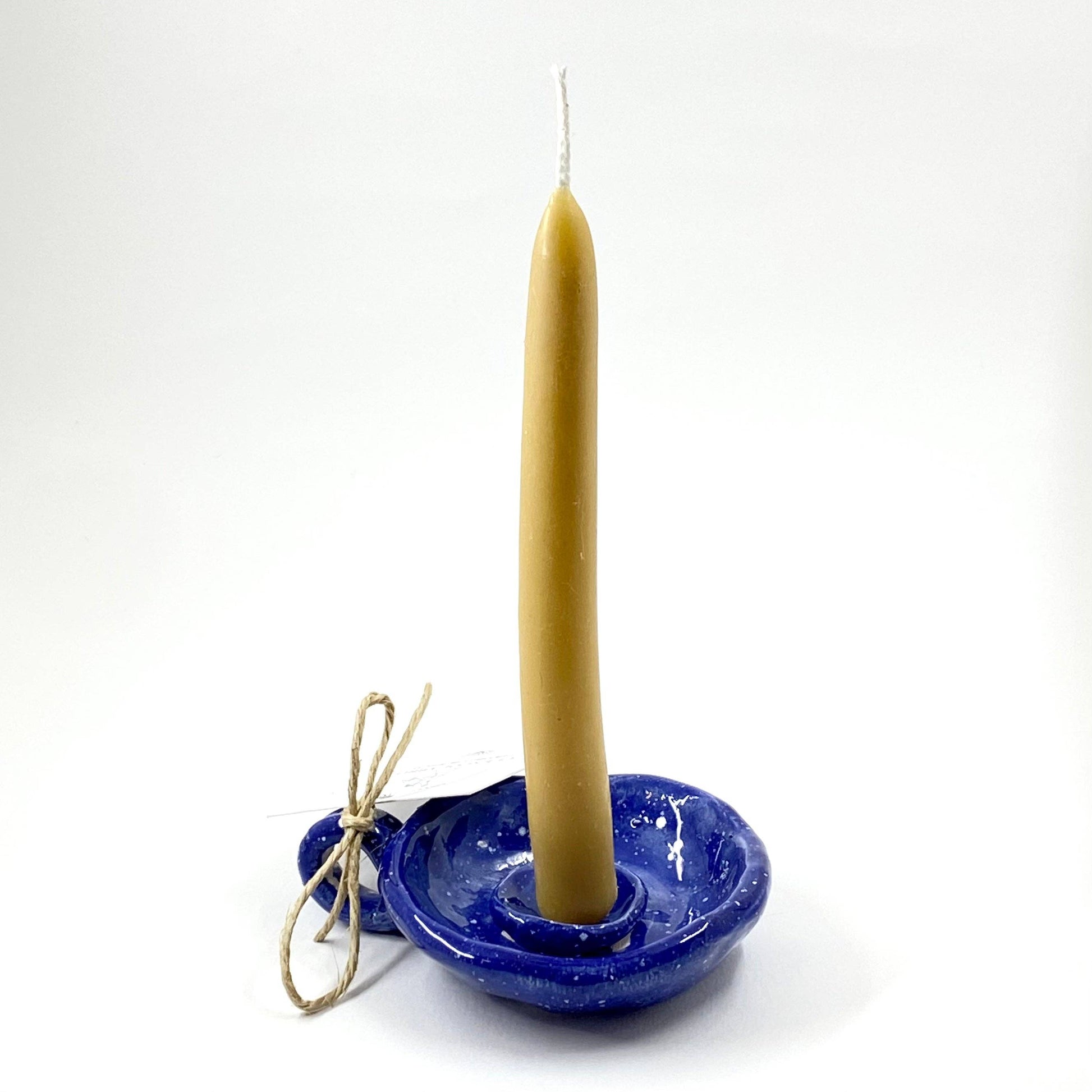 The bowl is a mix between a bowl and a candle holder. Each ceramic candle holder is modeled by hand, enameled and fired making each piece unique. Candles sold separately.