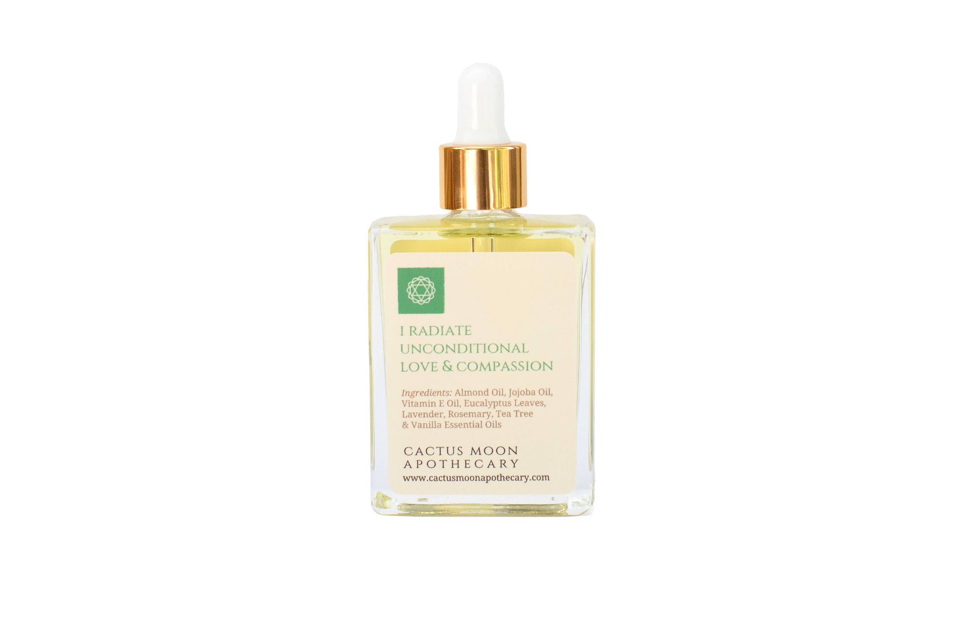 Formulated with hydrating oils and nurturing Lavender, Rosemary & Tea Tree essential oils, this Heart Chakra Body Oil helps you open your heart, radiate unconditional love and develop infinite compassion. For the most loving self-care practice, repeat the affirmation “I radiate unconditional love and compassion” while you massage the oil into your skin, and feel your heart expand and fill with unconditional love. Perfect for use in your yoga, massage, meditation, reiki or wellness practices.