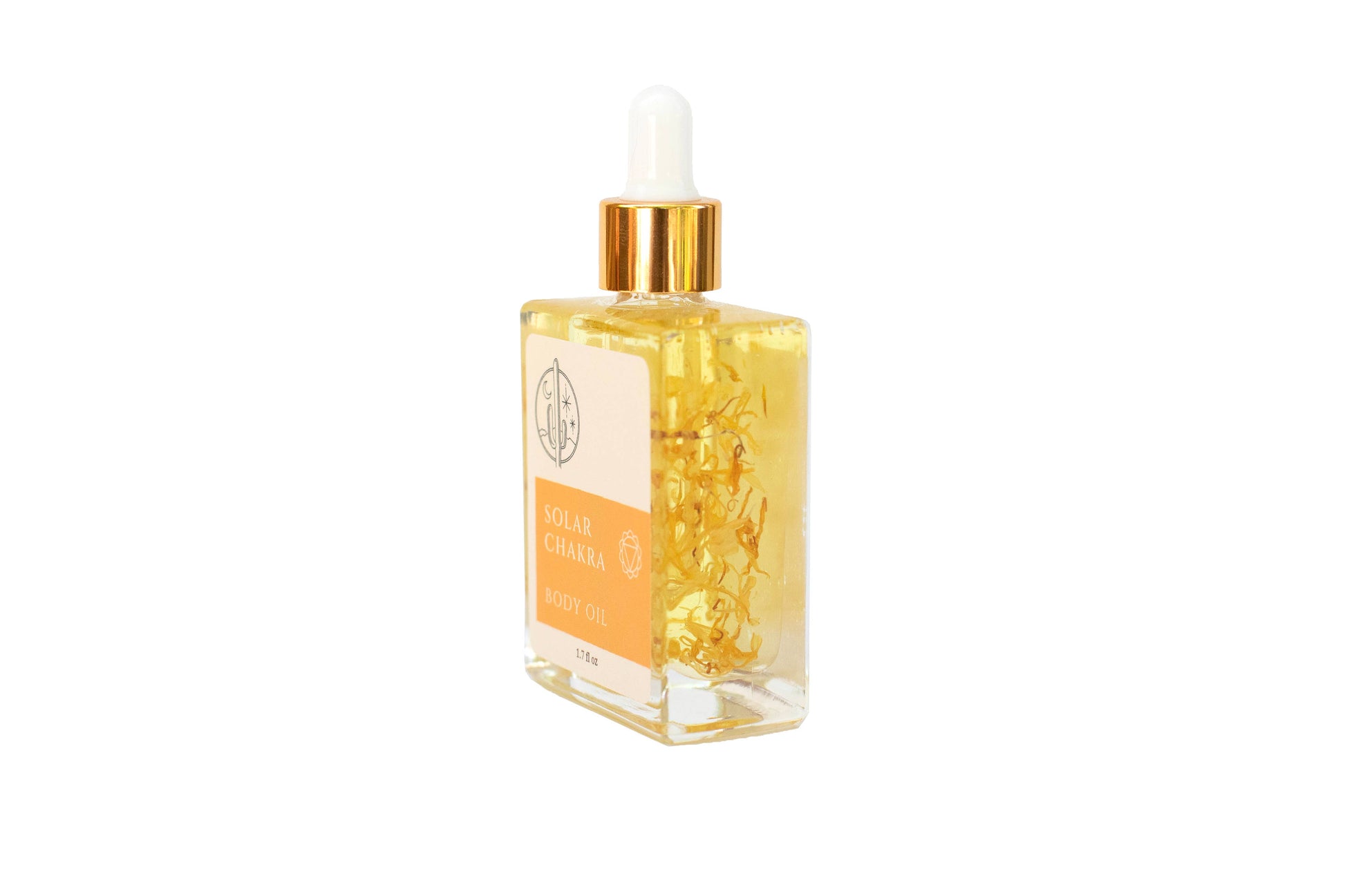 Aromatherapy Body Oil Formulated with hydrating oils and invigorating Lemongrass & Rosemary essential oils, this Solar Plexus Chakra Body Oil stimulates your vitality and power within, helping you to awaken to your highest potential and create radiant transformation in your life. For the most transformative self-care practice, repeat the affirmation “I exude confidence and inner strength” while massaging the oil into your skin, and feel your confidence and inner strength come to life. Perfect for use in your yoga, massage, meditation, reiki or wellness ritual.