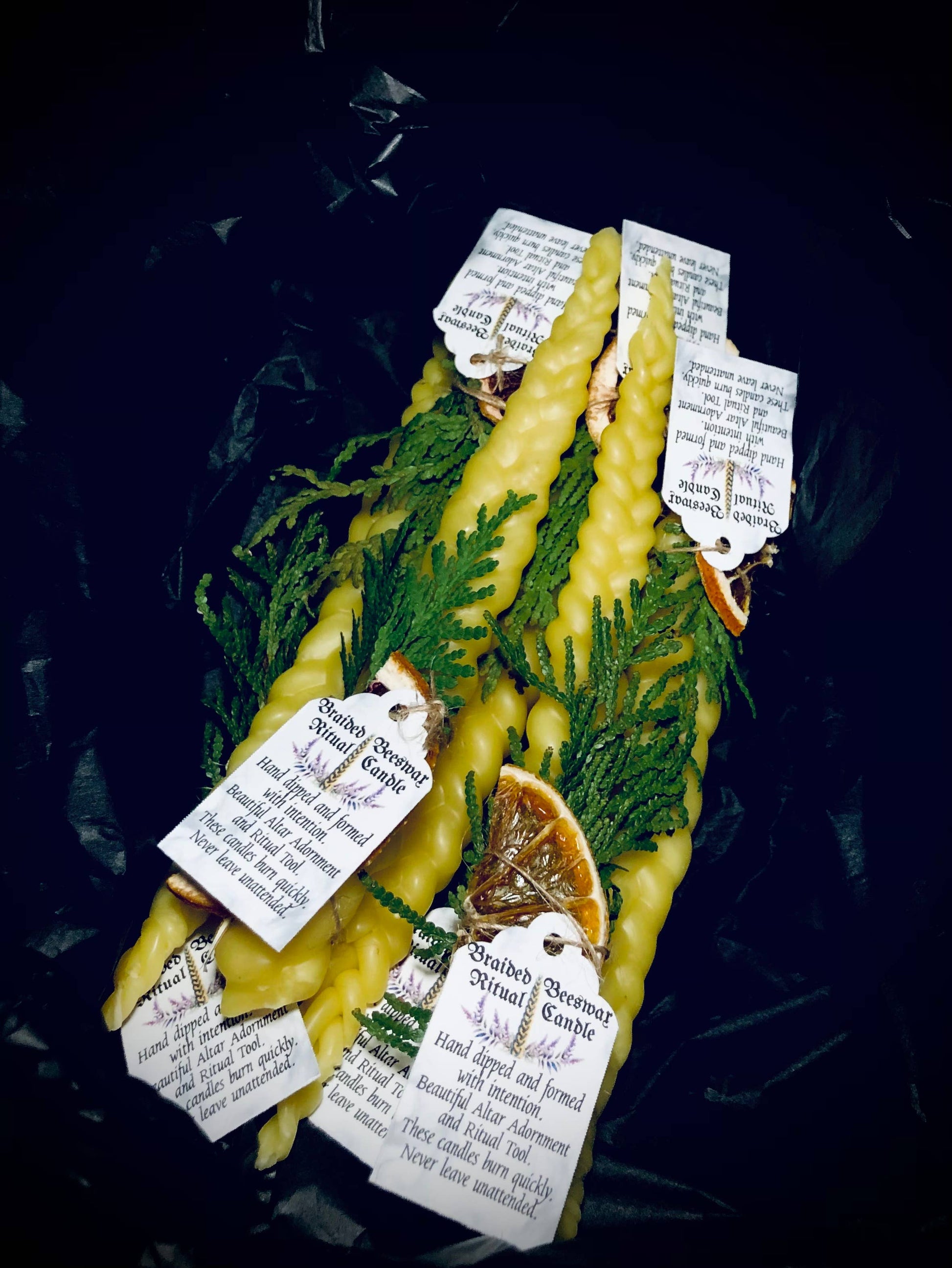 These beauties are hand-dipped in pure beeswax with organic hemp wicks and braided by BlakByrd Botanika. Throughout centuries, people across different civilizations and continents have embraced braiding as a form of expression, identity, and artistry. The act of braiding held protective and spiritual significance, offering protection and inviting blessings.