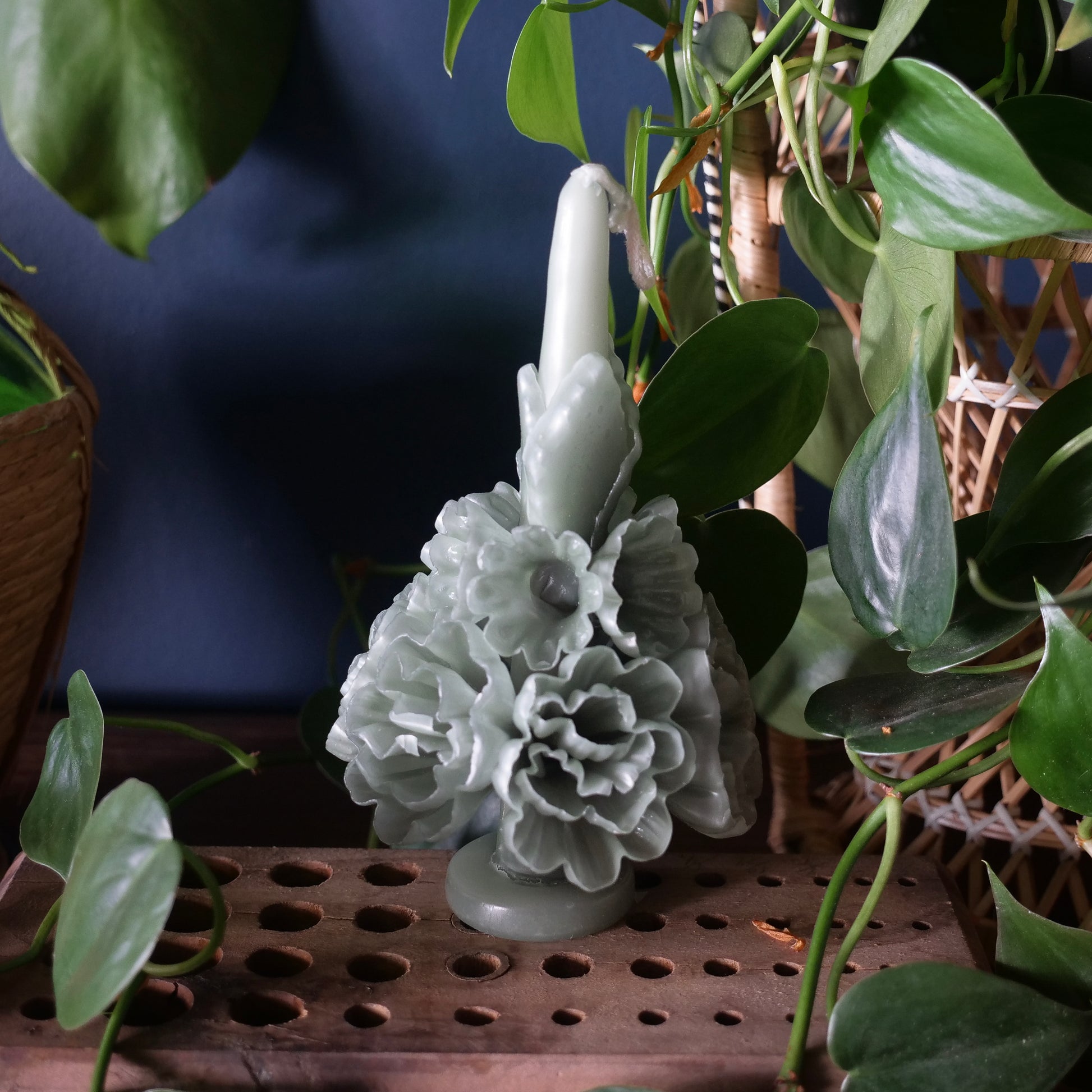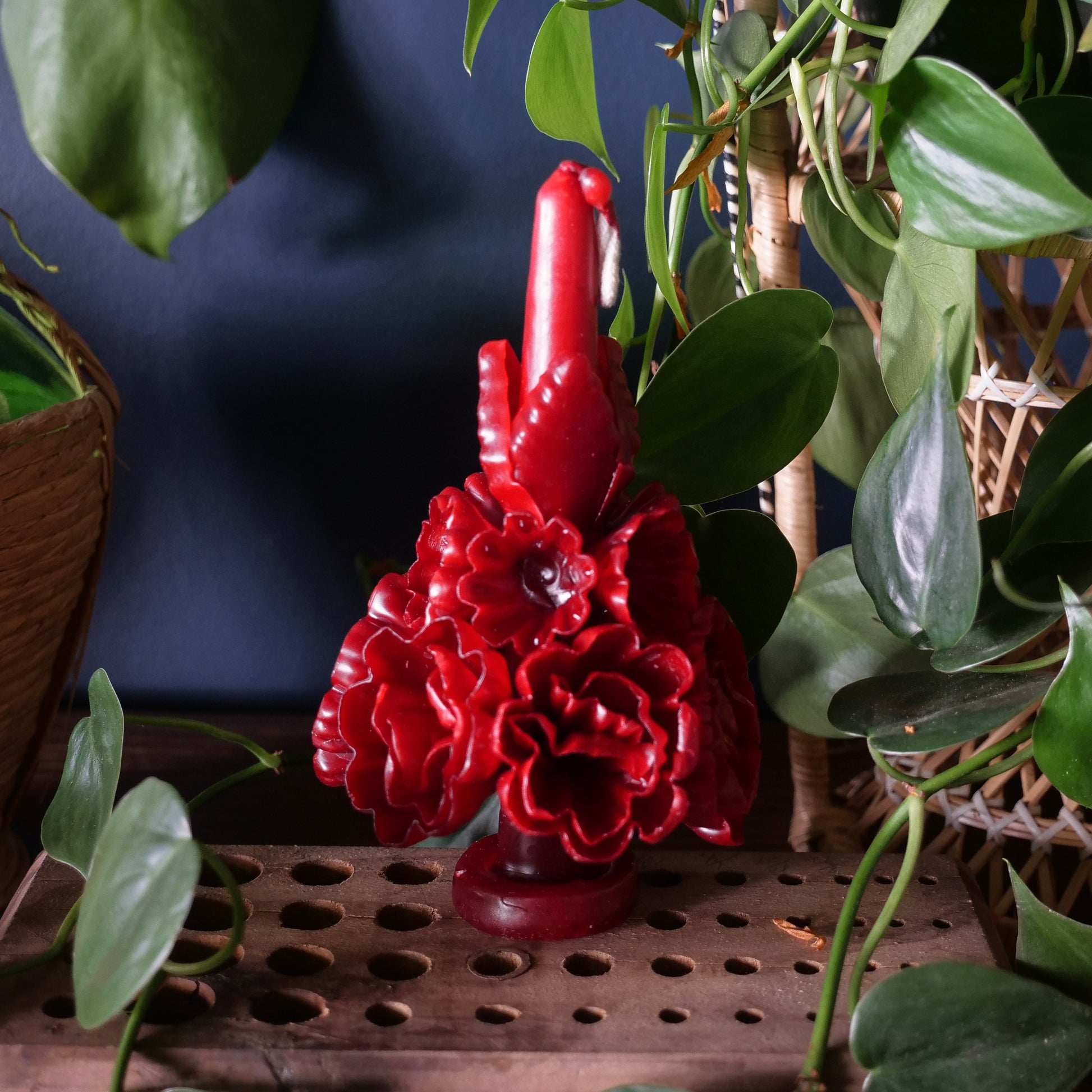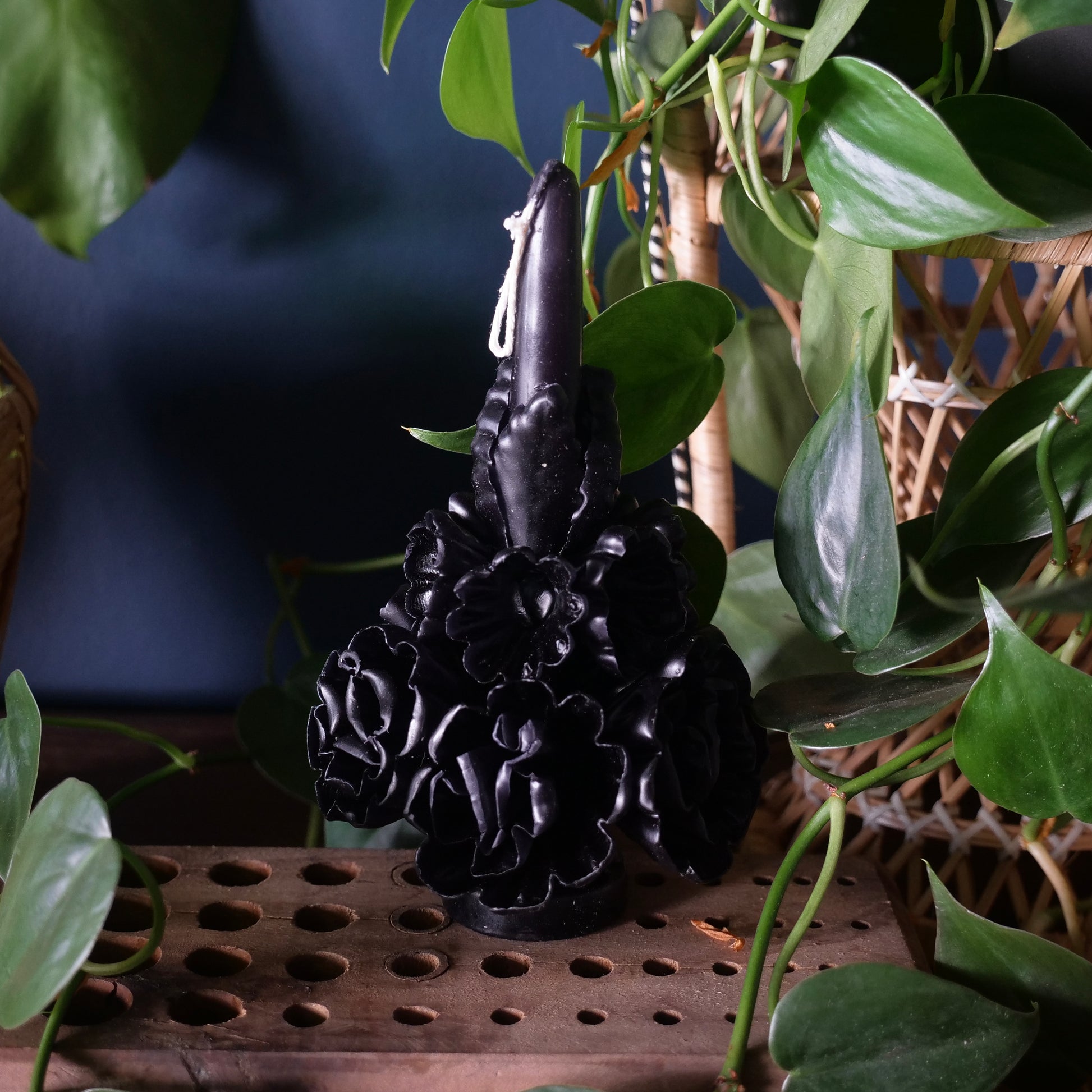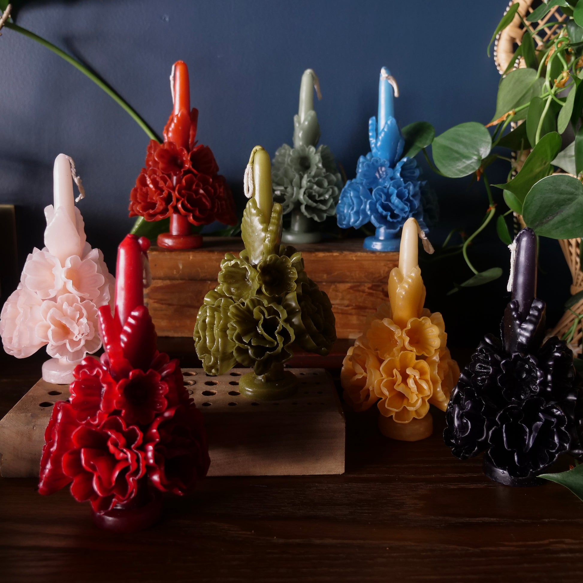 Handmade Oaxacan candle decorated with hand formed marigolds. Traditionally used for celebrations, can be burned or placed on an altar.