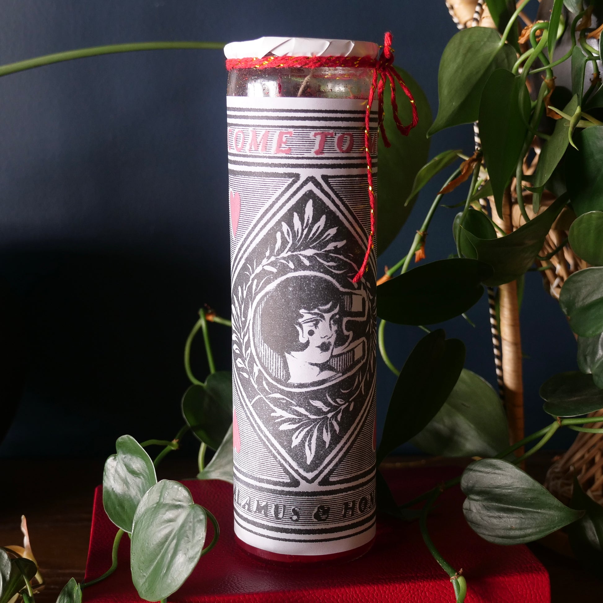 This candle is used to draw a lover closer or to draw a new lover. This is a candle of action, actively drawing romance your way. You can use this candle to increase seductiveness, to open up a potential lover to romance, get a date with someone you desire and to inspire passion in a target.