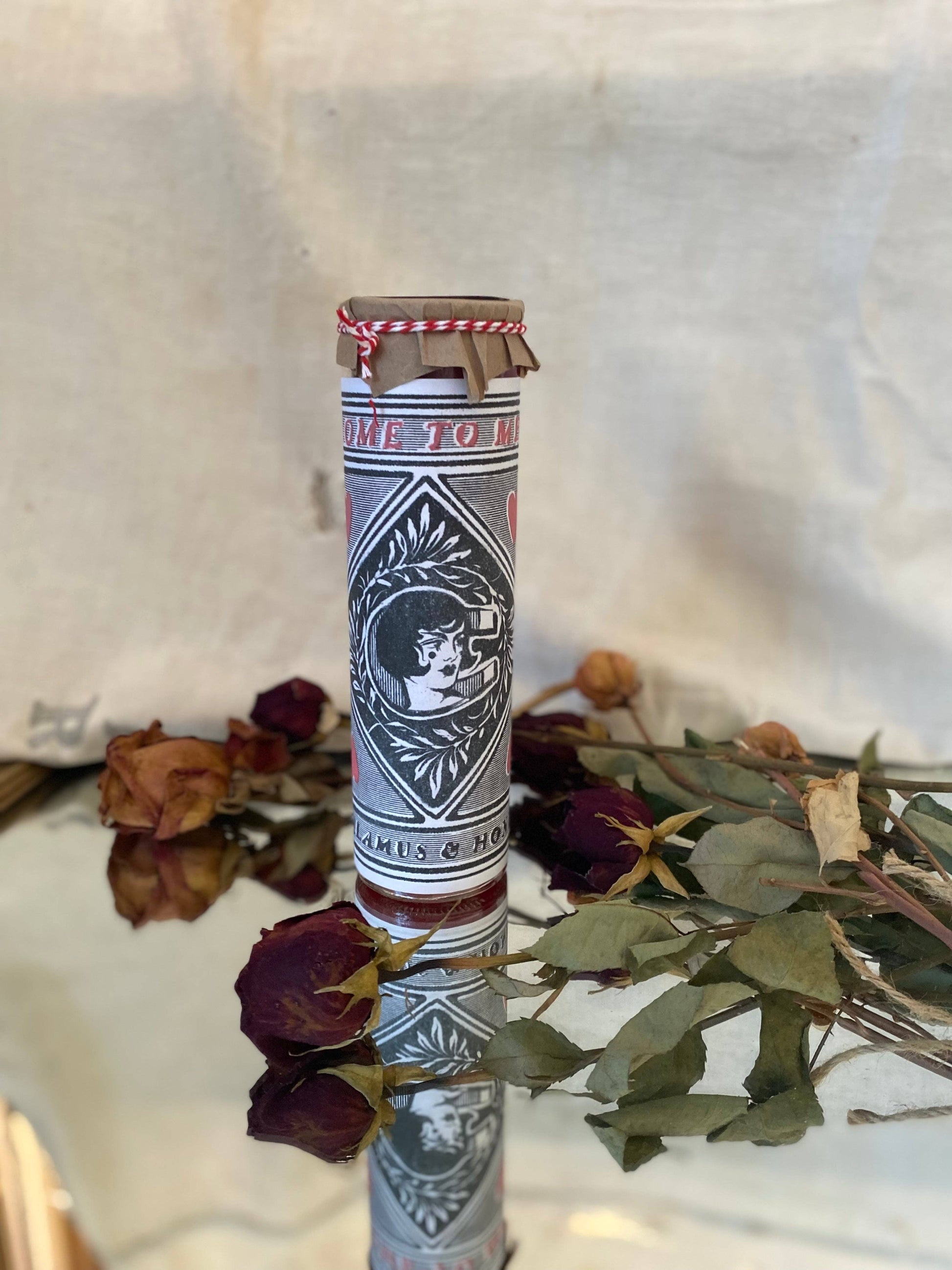 Calamus and Honey's candles are anointed, blessed, and dressed with oils, herbs, and curios.