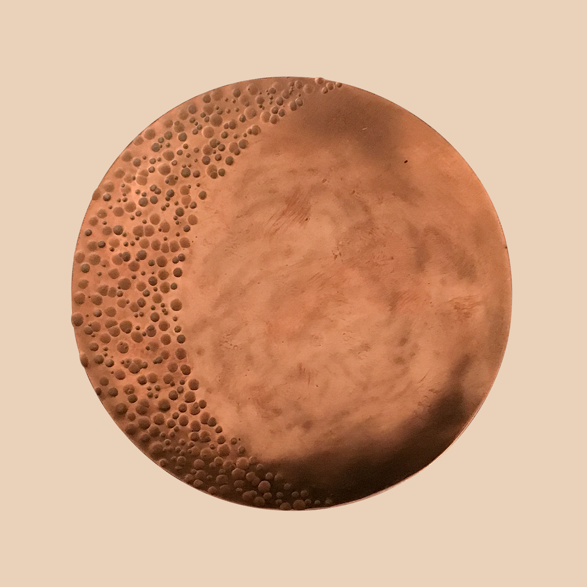 Hand hammered copper dish featuring a crescent moon. Use for you incense, smudging, or just as a general catch all. (smudge stick not included).