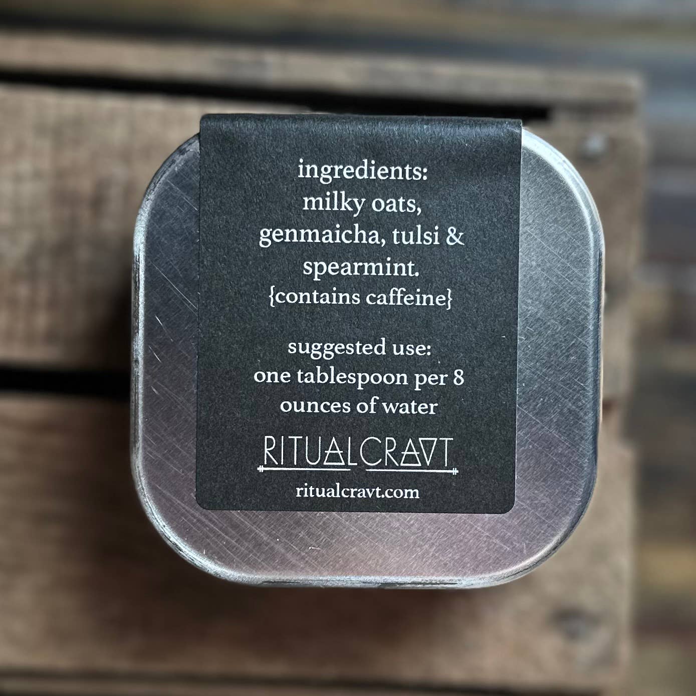 Ingredients: genmaicha, milky oat tops, tulsi, and spearmint *contains light caffeine*