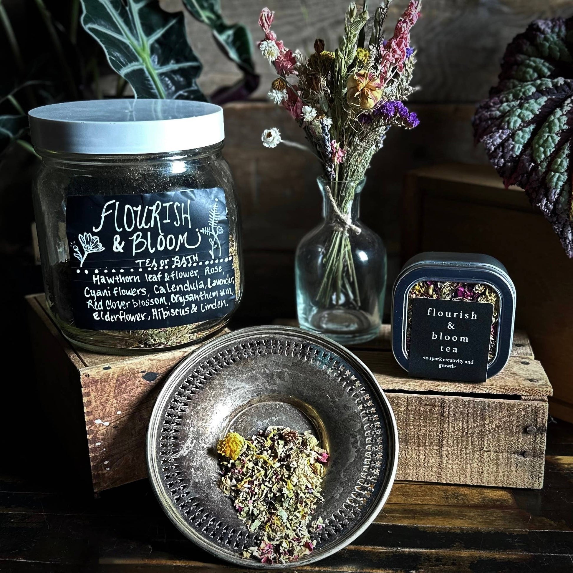 Handcrafted in Denver, Flourish & Bloom tea is made with the purpose to grow and inspire, create and share. Brew this tea with friends or members of your community to flourish and bloom together. Made for witches by witches. This blend in particular is made completely out of flowers.
