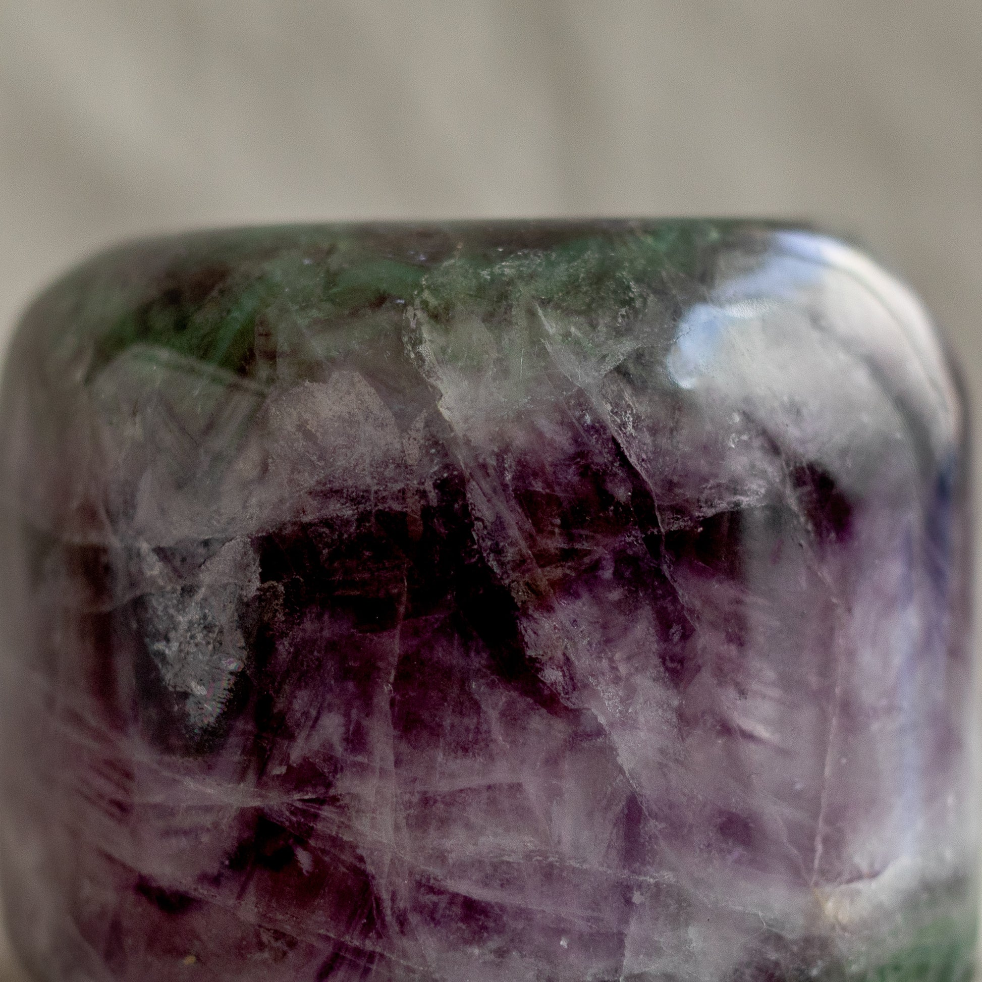 Fluorite: a form of calcium fluoride, Fluorite boosts aptitude and discernment, used for grounding, protection, and peace. Called the "psychic vacuum cleaner", helps with weeding out external chatter, cluttered thoughts, and negativity while aiding in the absorption of new information. It's also said to enhance the strength of other stones.