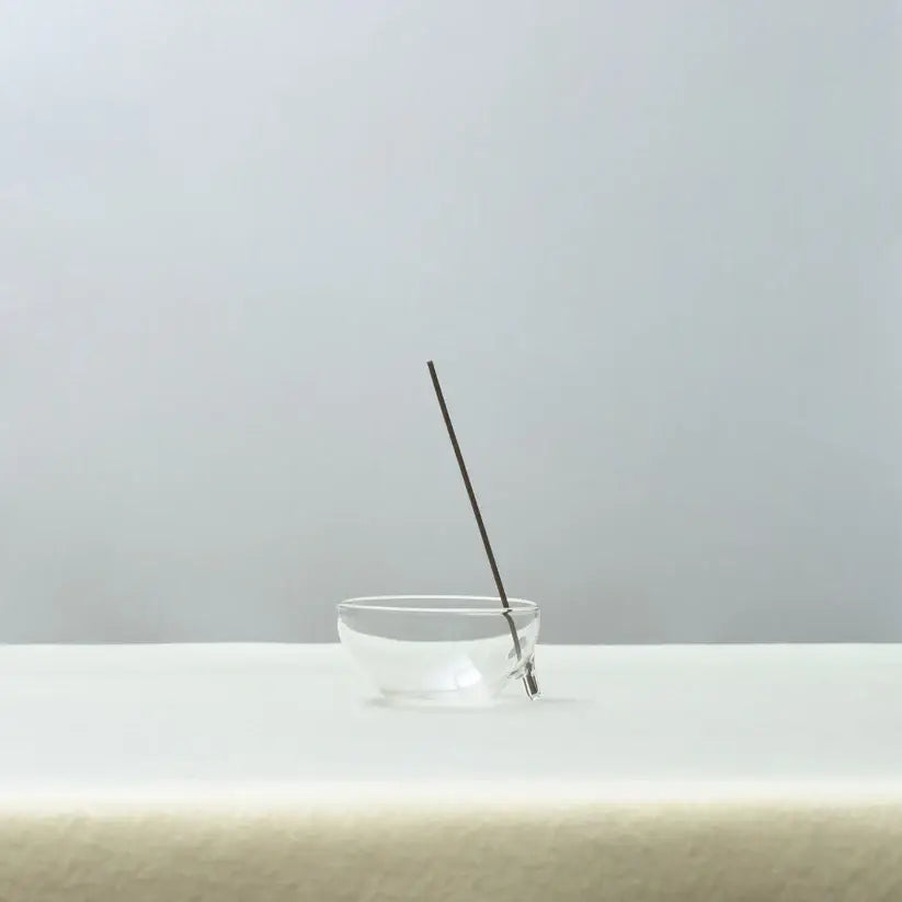 Hand-blown in heat-resistant glass, this incense burner has been thoughtfully designed in the form of a bowl to naturally gather ash—both a functional tool and a visual marker of passing time as remnants of the incense collects.