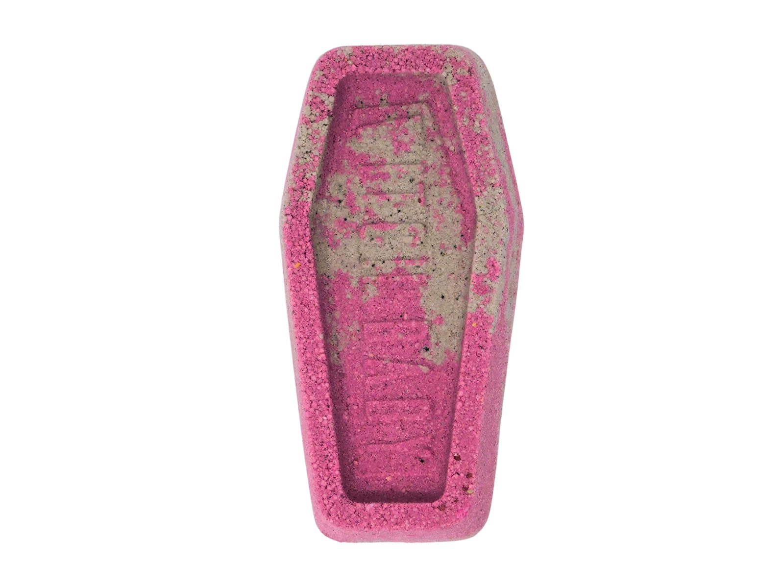 Say RIP to bad days as you wash them down the drain with this elegant and macabre coffin bath bomb. This beautiful floral petal pink bath evokes visions of a stroll through a springtime graveyard. It has the aroma of funeral flowers and coffin satin intermingled with the smell of warm dirt. It can be used to honor the dead, let go of the past, and banish that which no longer serves you.