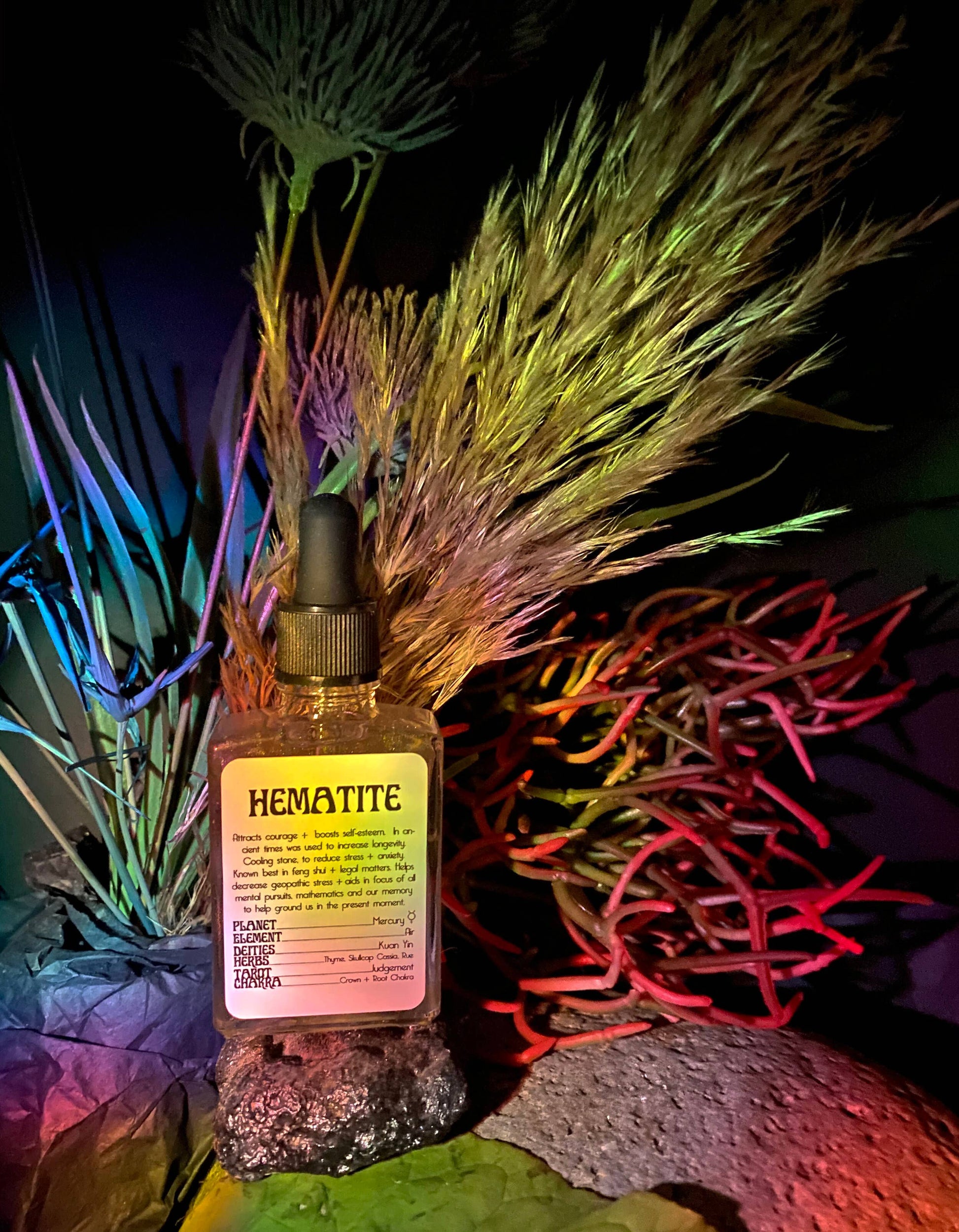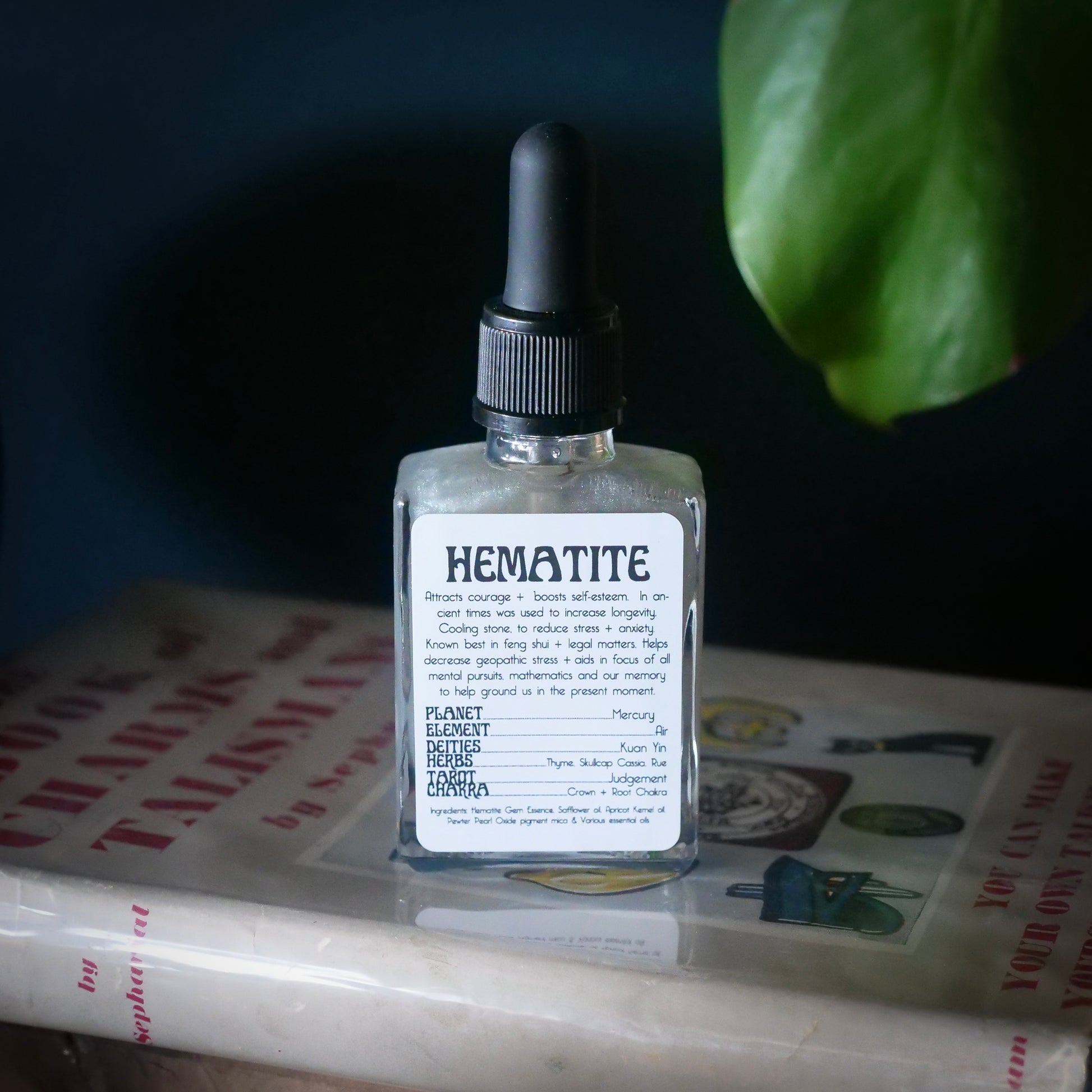 Ingredients: Hematite Gem Essence, Safflower oil, Apricot Kernel oil, pewter pearl Oxide Pigment, & various Essential oils + Reiki energy.