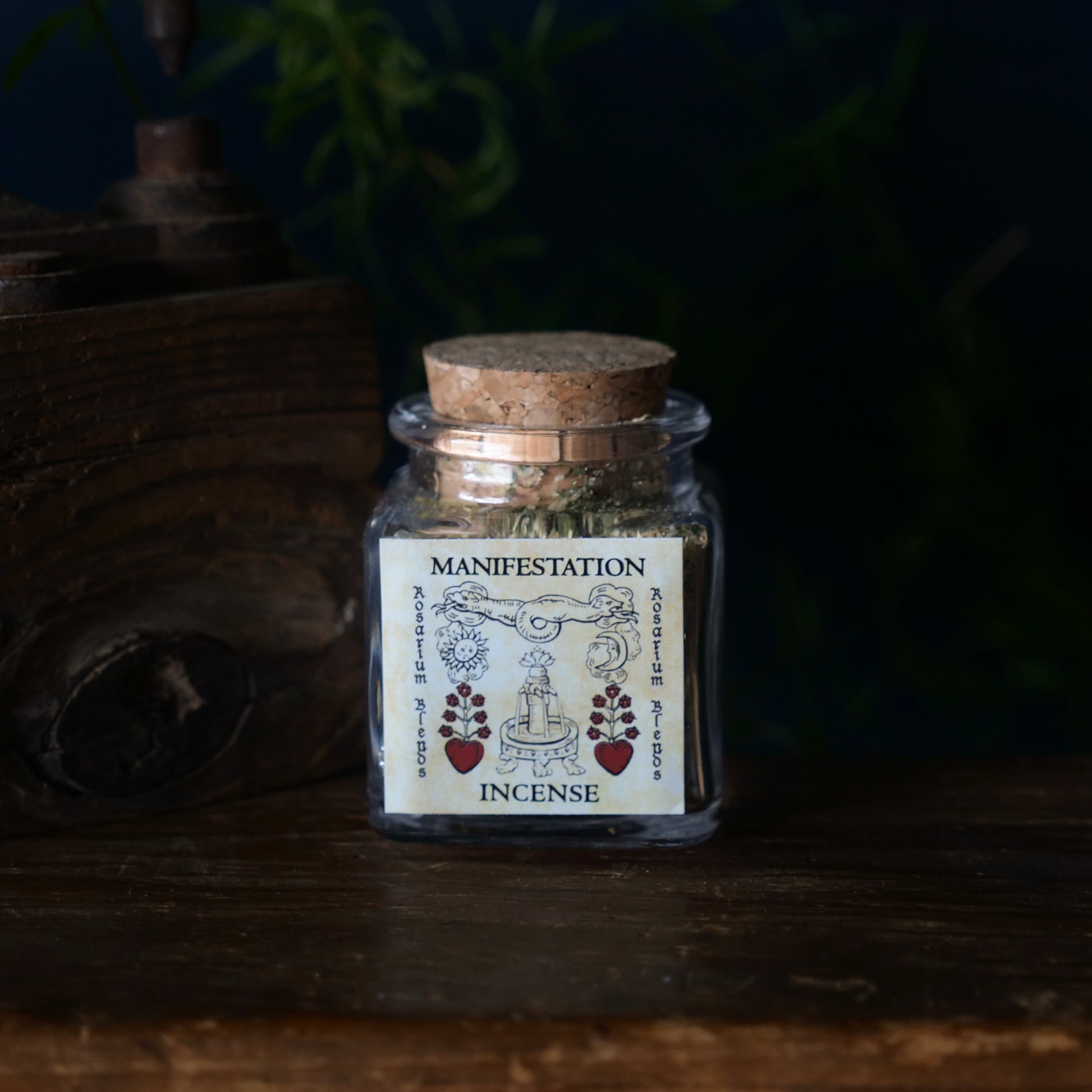 Macrocosm earthed in the microcosm to initiate and materialize spiritual or material work. Work with our Manifestation ritual incense to initiate, manifest, and materialize your material and spiritual goals into the microcosm. As Above So Below. May be used as incense, in mojo bags, to dress vigil candles or roll the outside of dressed taper candles.