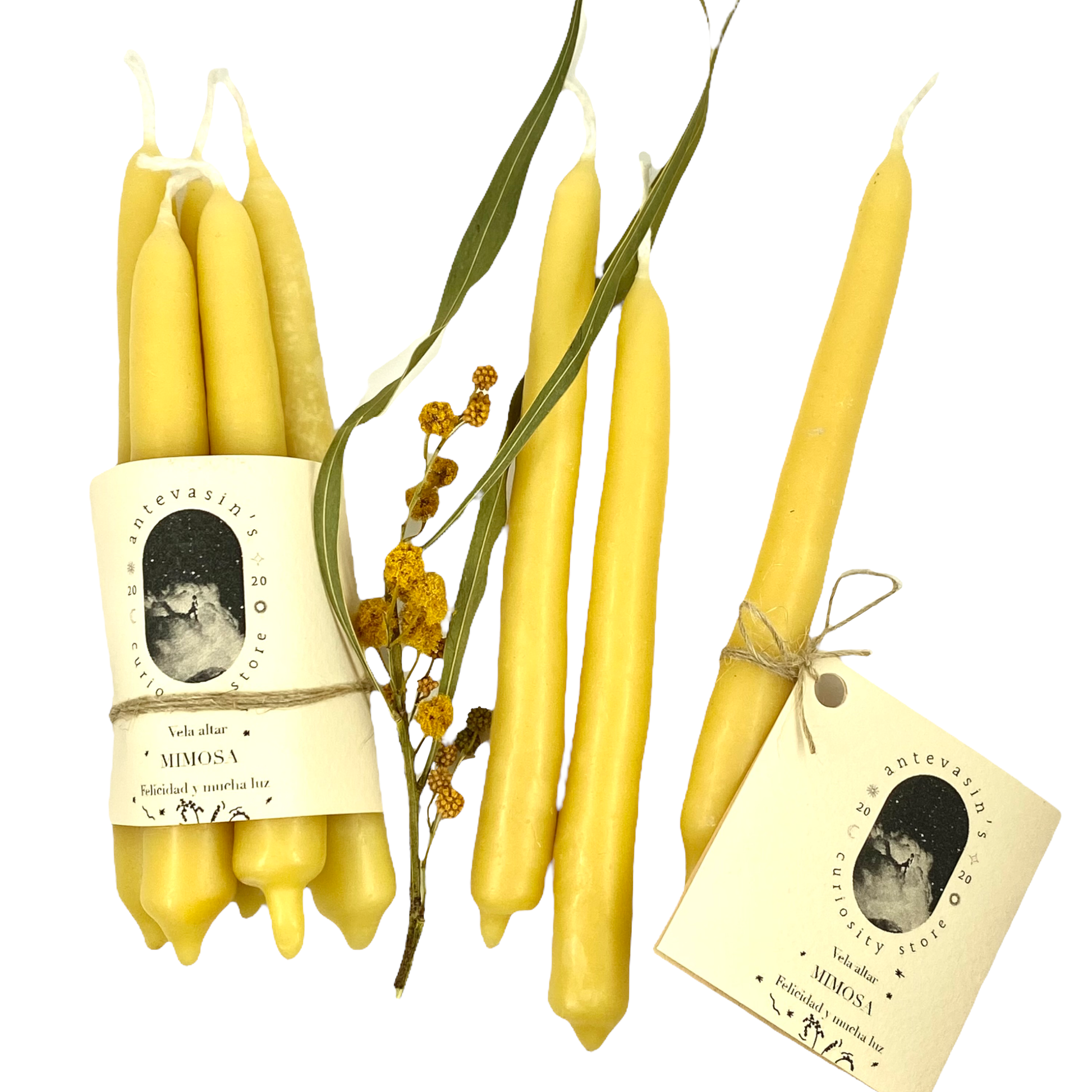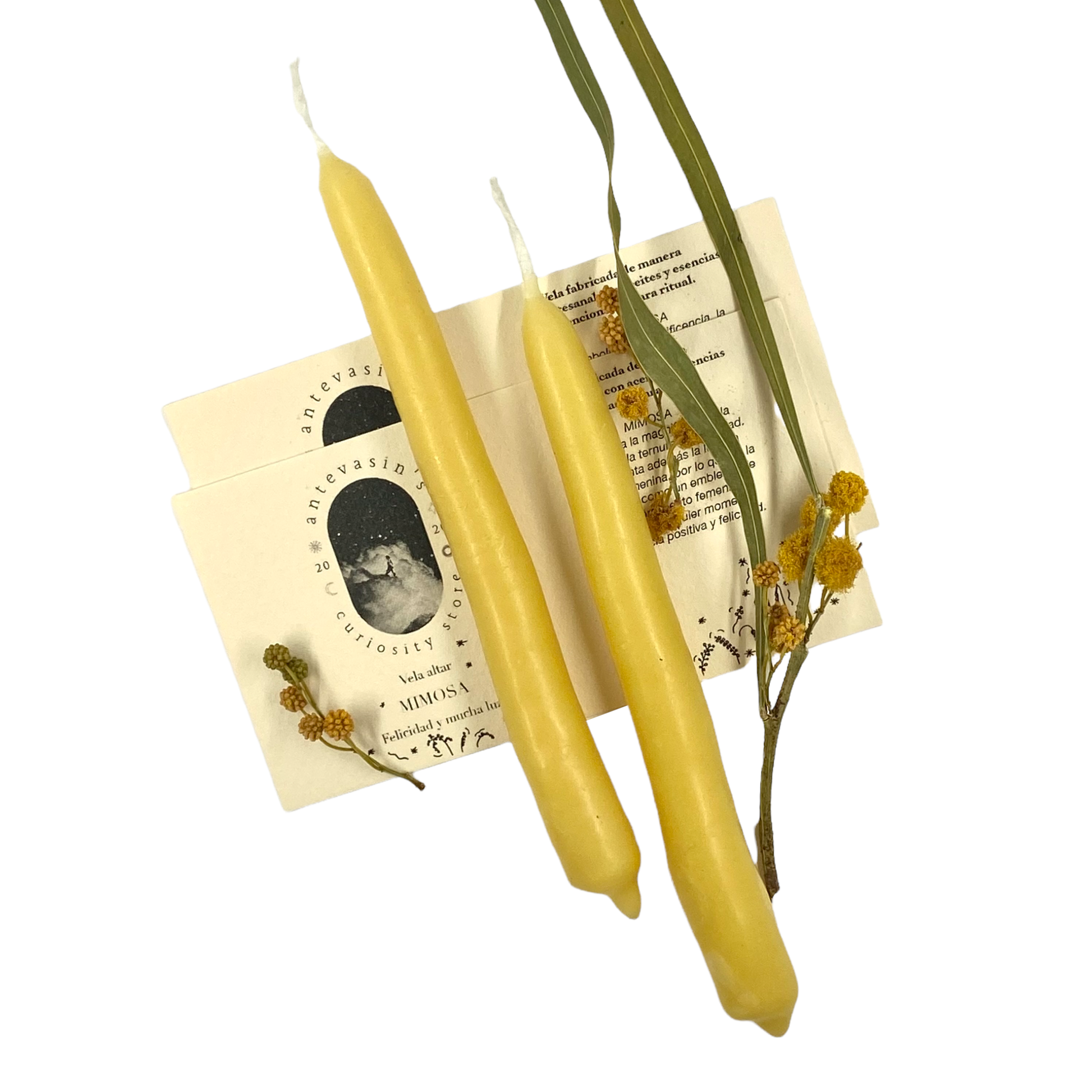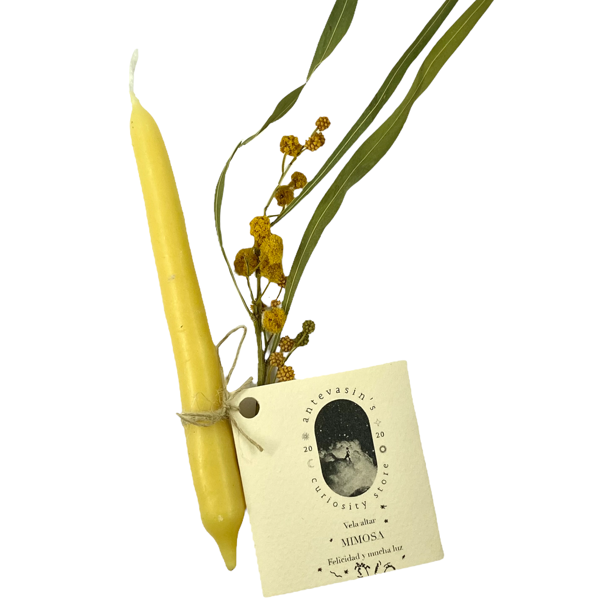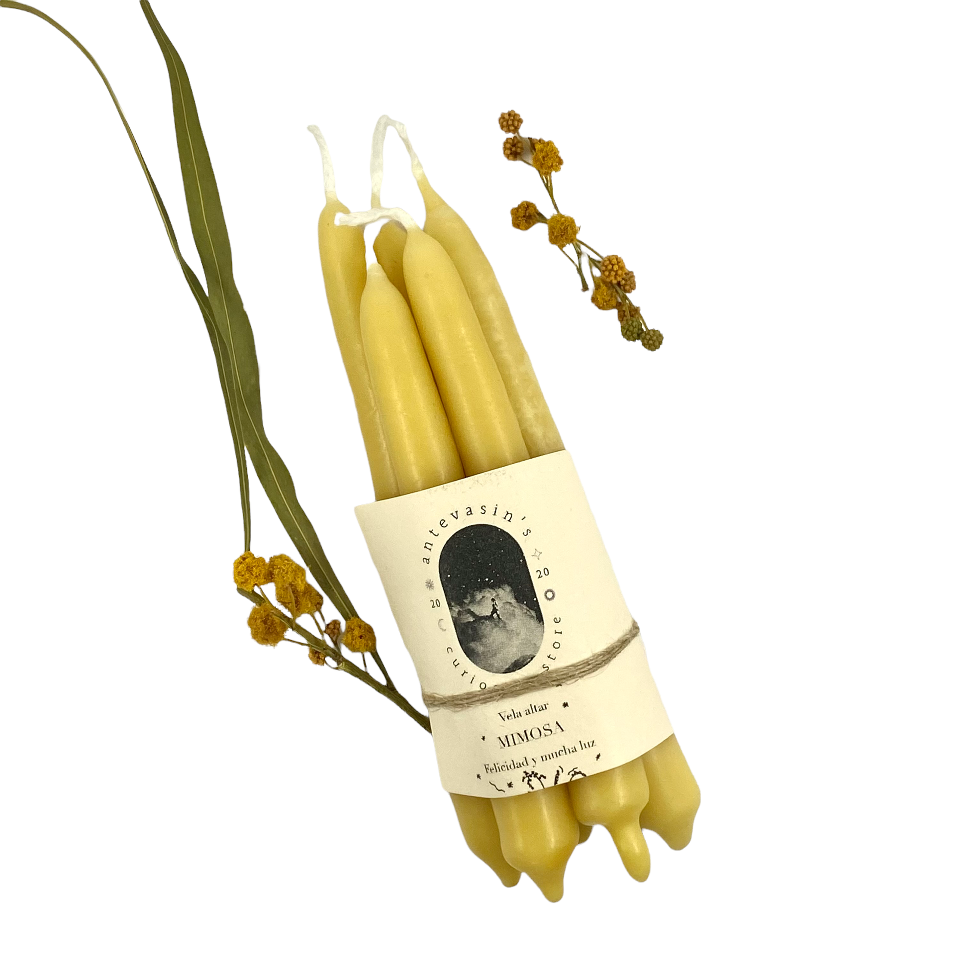 If you are looking for happiness, joy and luminosity this is the candle you need. The yellow candle is by pagan tradition a great ally if we need to do a ritual to attract light and joy to a person, or a space. It is also used to heal friends who have suffered harm, to pay us debts and to give us a little push to show up and be seen. Infused with the scent of mimosa, a shrub with pompous yellow flowers that are said to attract friendship. It is also used to get the job we are applying for. This candle has yellow Mica powder, to give a bright touch to the heart of the candle, symbolizing light.