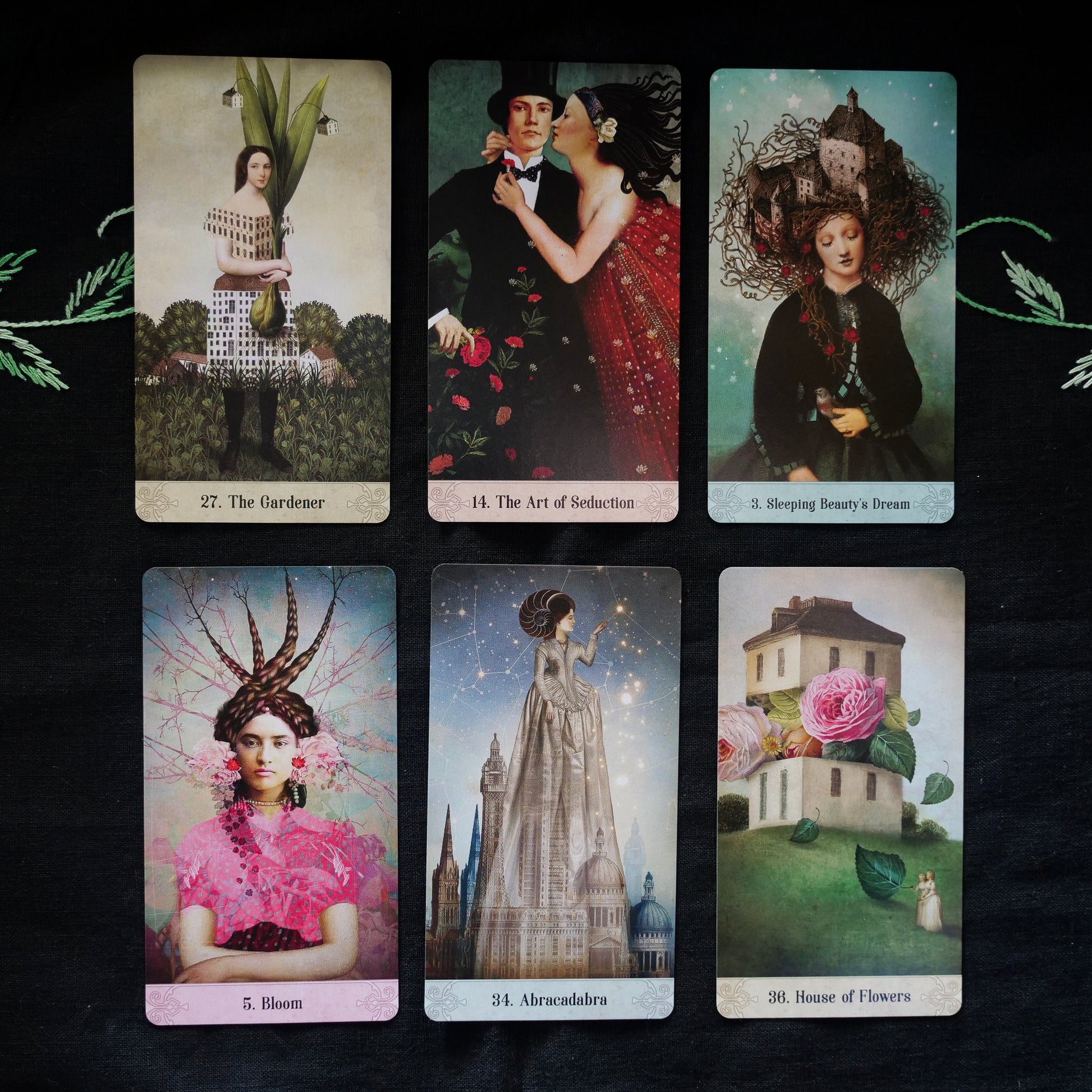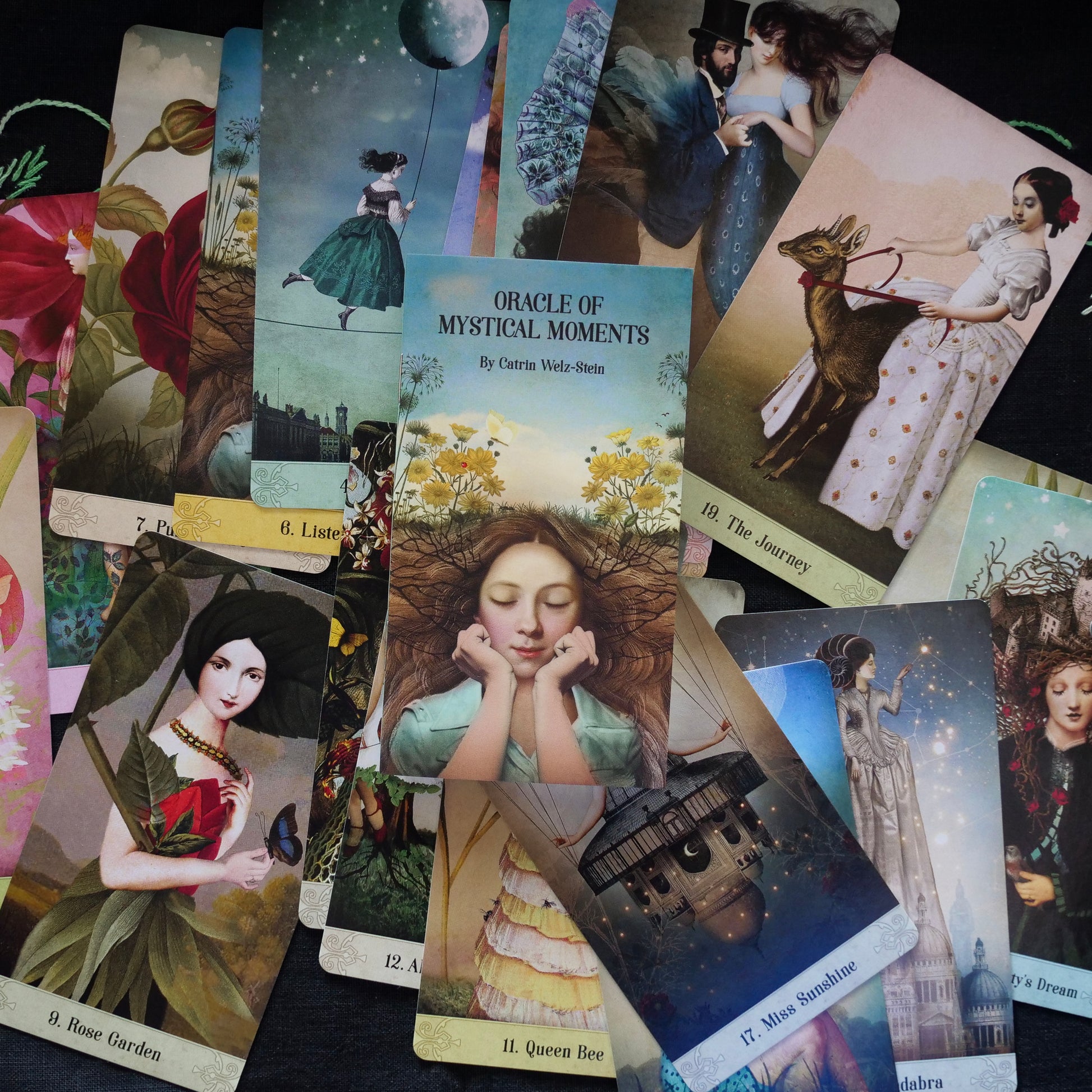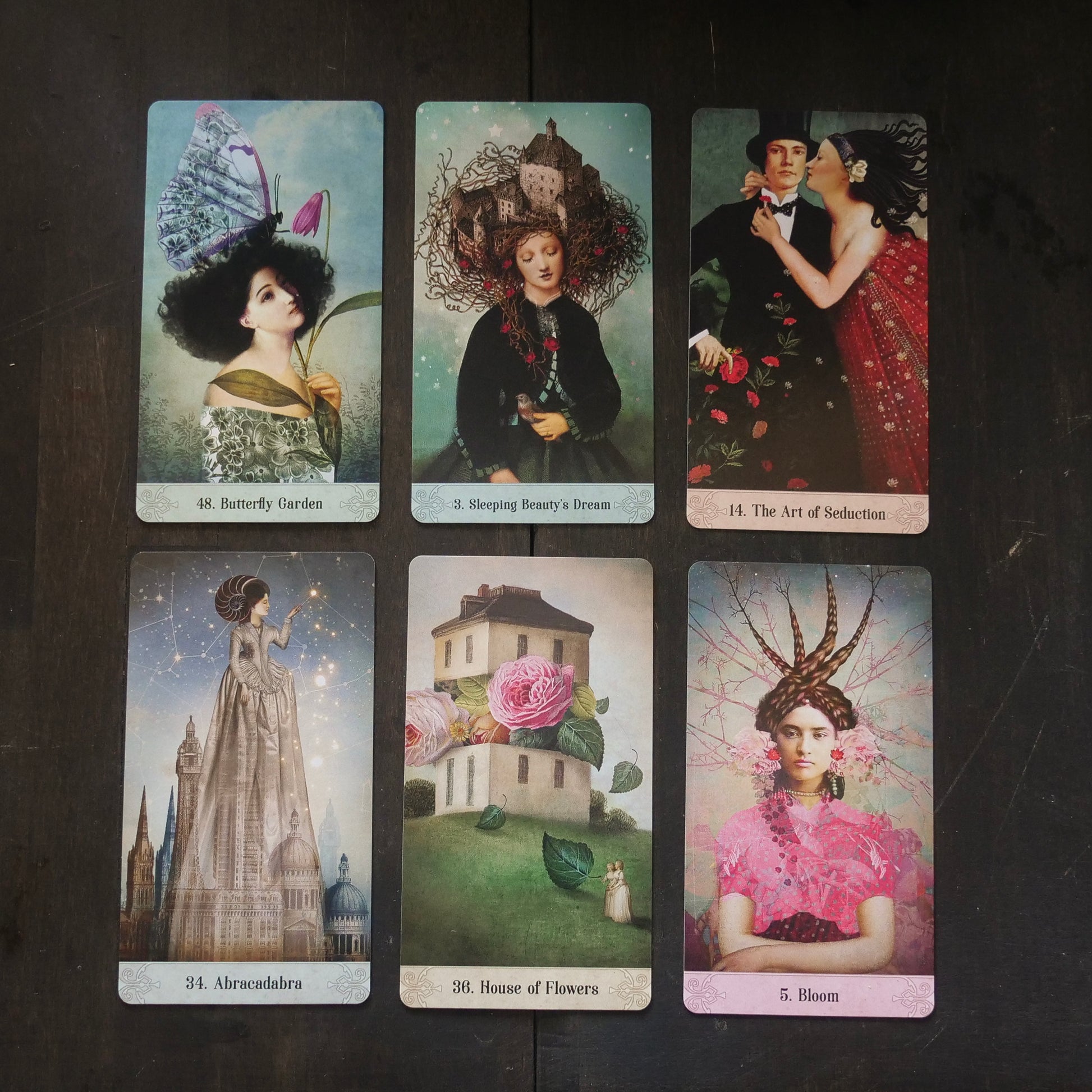 Visionary collage artist Catrin Welz-Stein intermixes unexpected elements of nature and imagination, creating a sumptuous world where flower spirits and floating castles happily co-exist. Each of the oracle cards captures a magical moment full of delightful surprises and vintage charm. Powerful messages in the 44-page guidebook lead you to discoveries of insight that inspire new ways of looking at life. Her artwork has an ethereal feel that explores the area between imagination and reality.