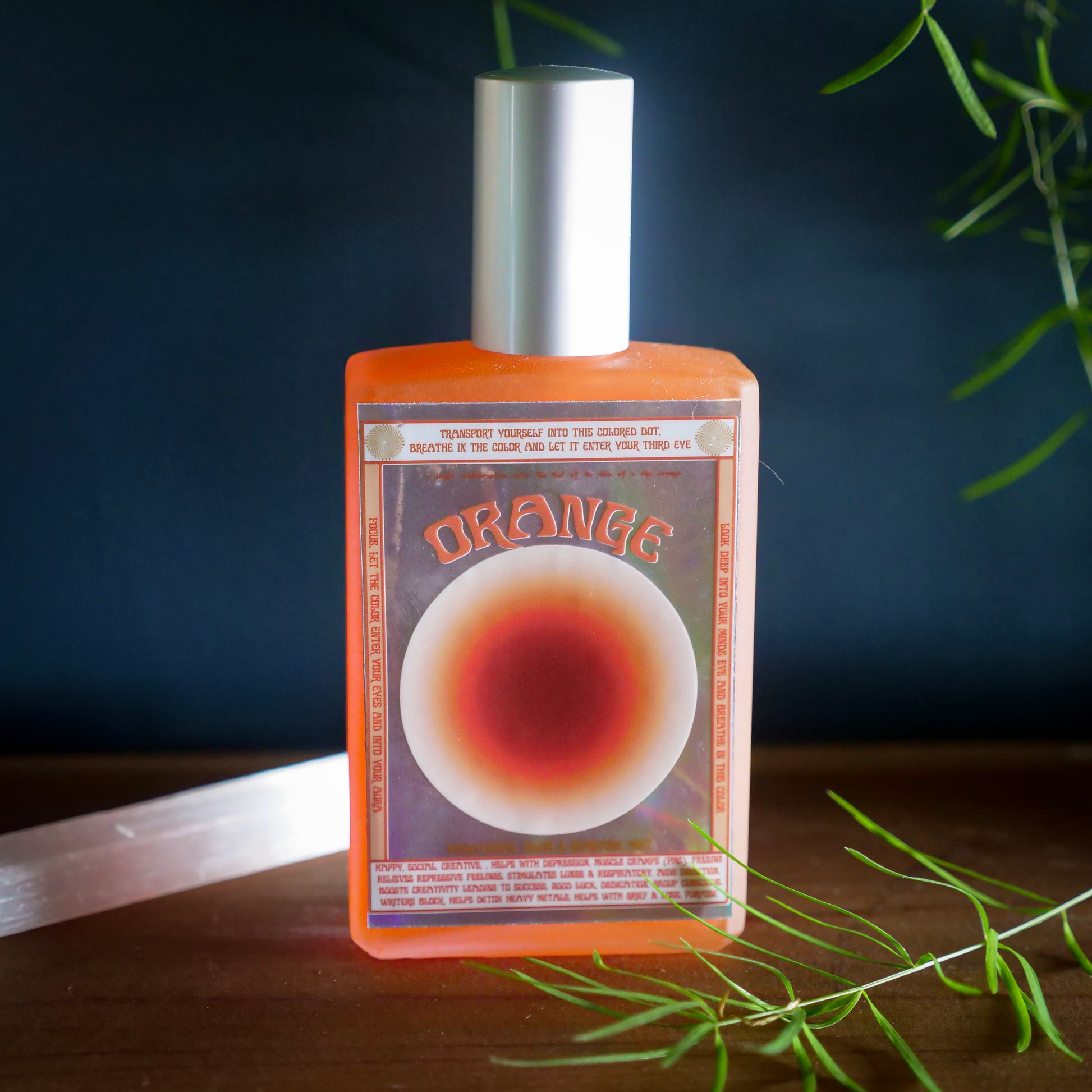 This mist is to be used in assistance of visual color healing and meditation. The labels are made as a visual guide to help assist in bringing the color in though the eyes, and to help with color breathing, light therapy, working with the chakras or crystal healing. To emphasize this color you can, eat foods that are orange, bathing in this color, drinking solar charged water from a colored bottle or filter, wearing tinted glasses or clothing, gemstones, candles, or the sound of a harp or the music note A.