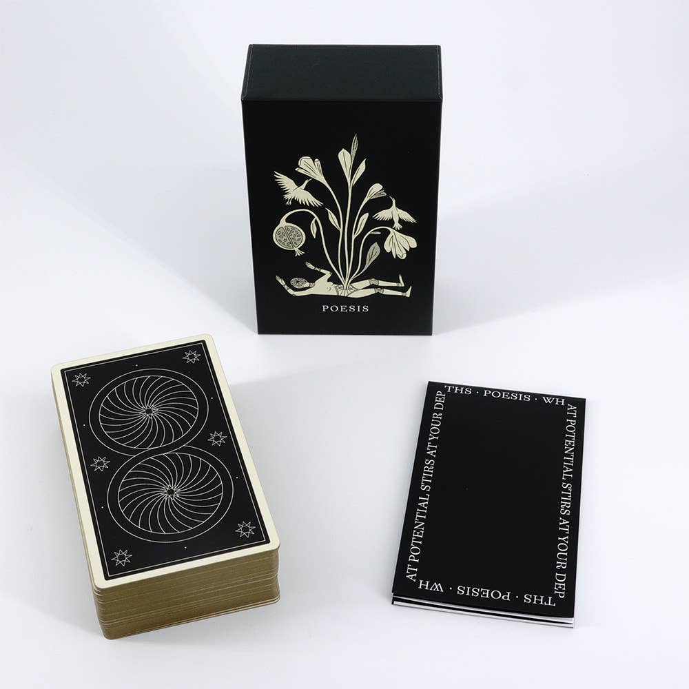 POESIS is a collection of 77 cards that is designed to called us within when we have questions, trusting that we already have all the answers in the centre of our being. The cards combine art and poetry to help cultivate one's own intuitive abilities when it come to decision making, knowing that our intuition can be a dependable source of guidance.