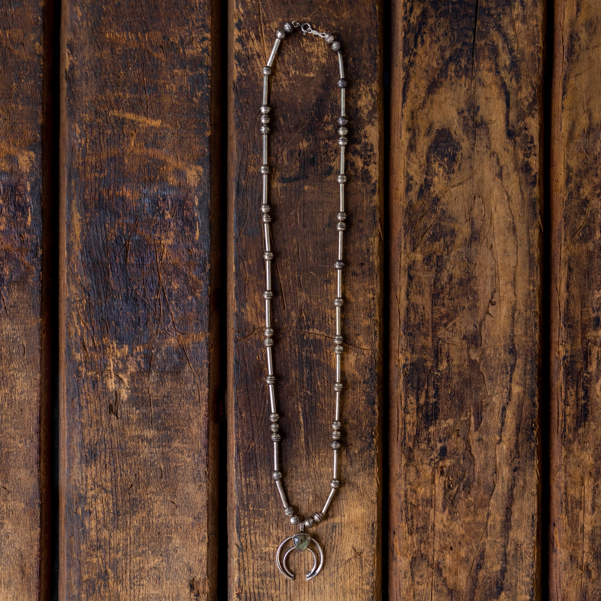 Goddess of the Moon and the 'mother' of vampires, Selene drives a moon chariot across each night sky. This necklace is 25" long and is decorated with hand made silver beads. Pendant measures 1.25" long and features a natural 10mm stone.