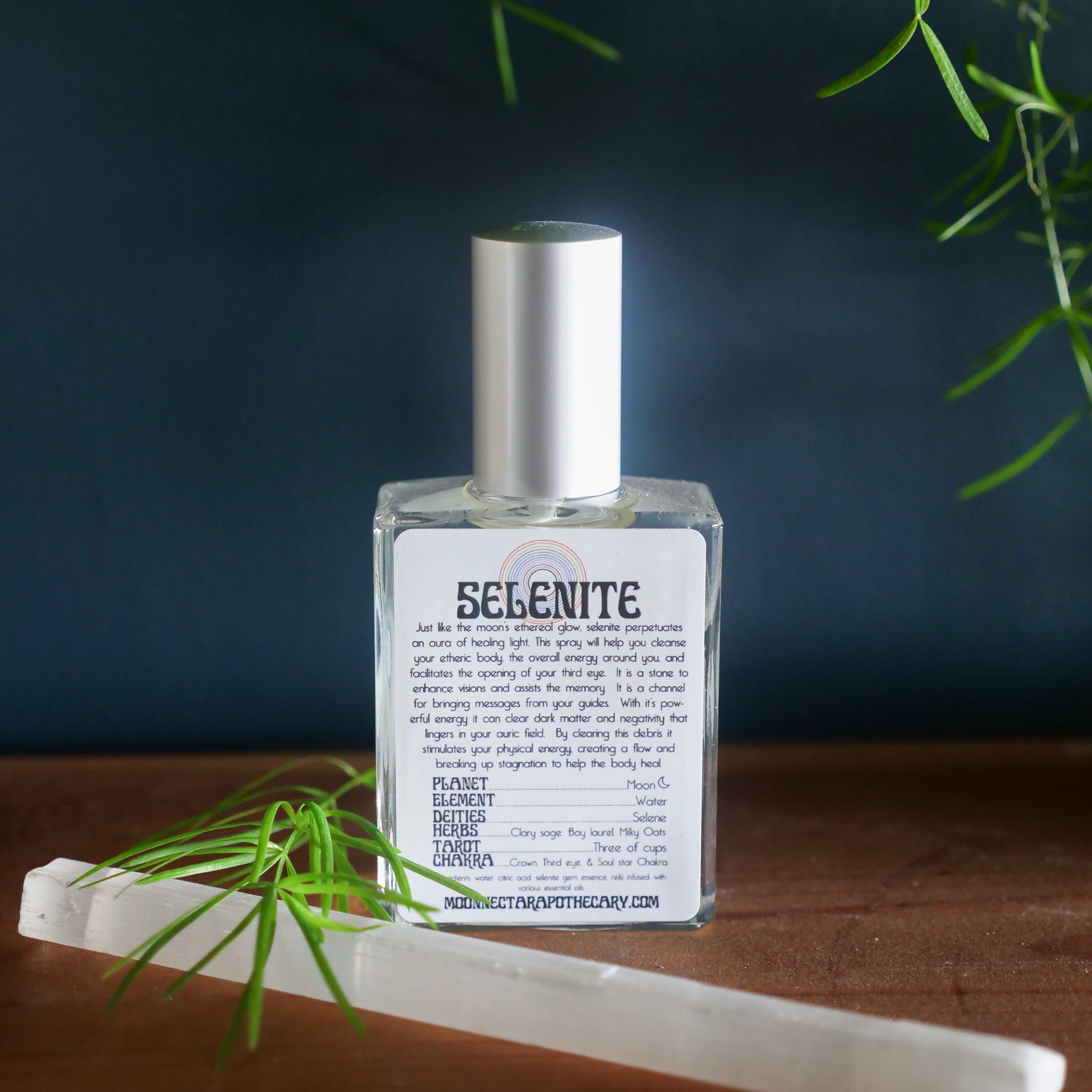 Ingredients: Water, Citric acid, Selenite gem essence, Reiki infused, with Various essential oils.