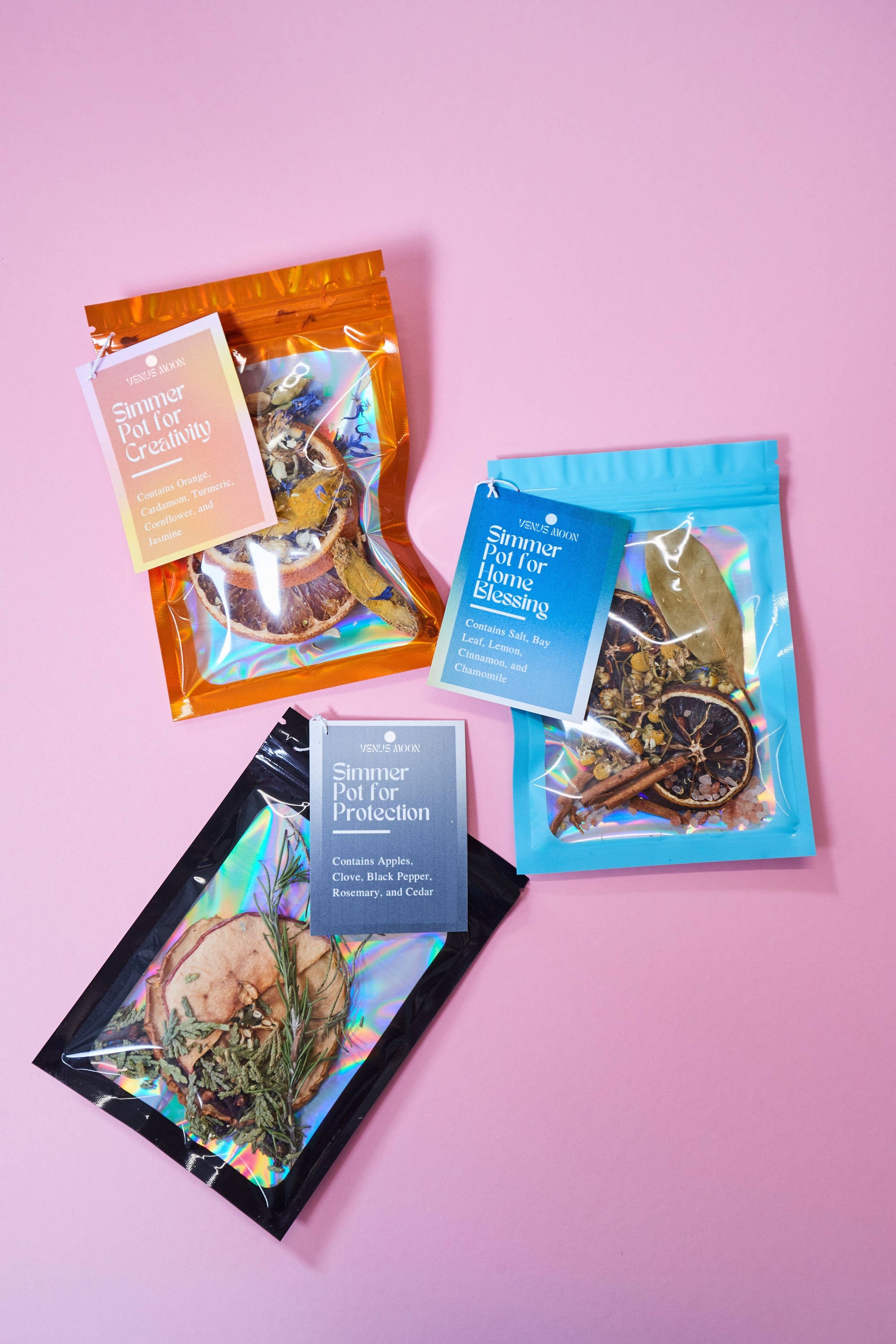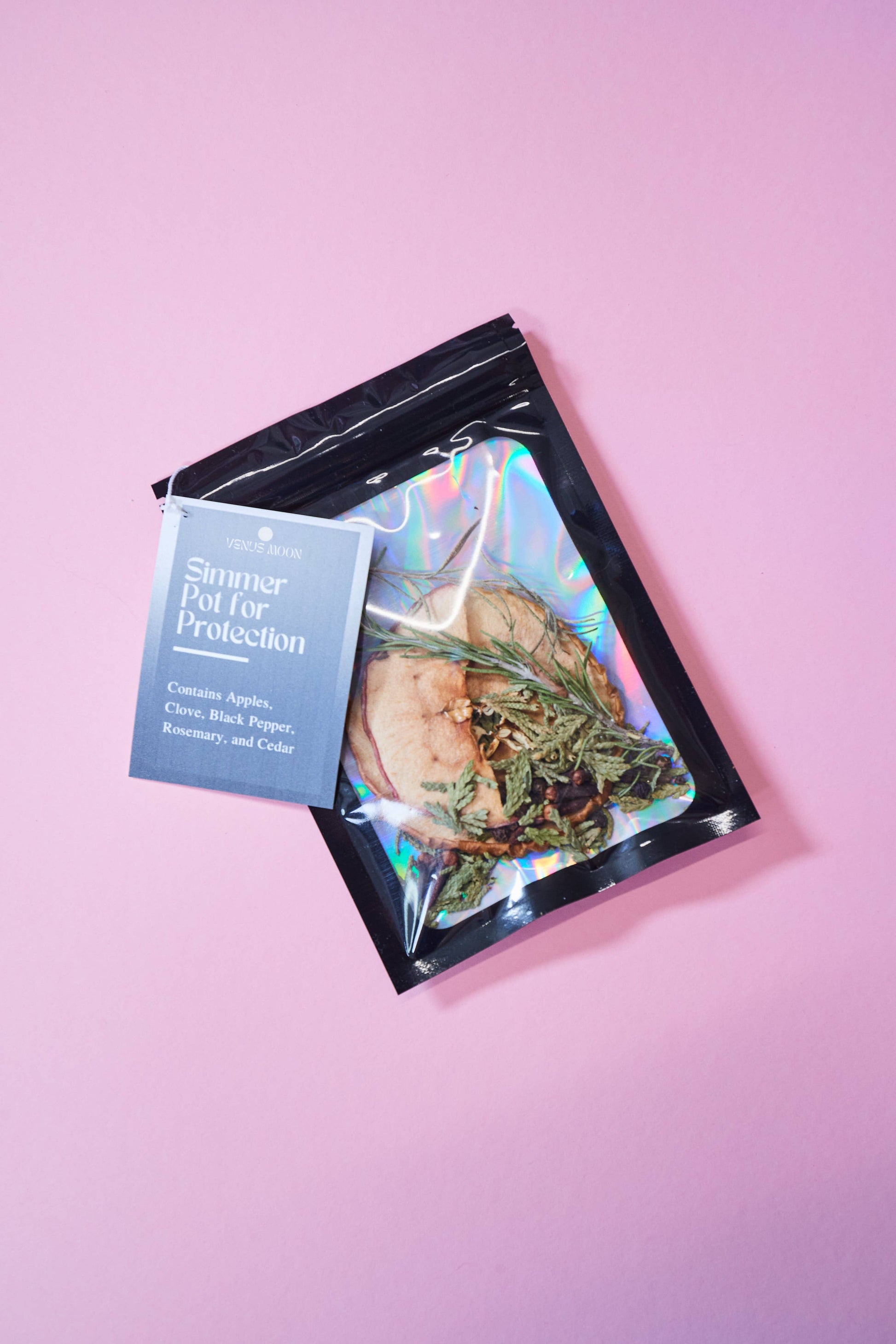 Looking for a home protection spell that's easy, effective, and aromatic? Look no further than Venus Moon's Simmer Pot for Protection! Made with apple, clove, black pepper, rosemary, and cedar, this herbal potpourri is perfect for warding off negative energy and keeping your home safe and sound. Plus, it smells amazing! Simply simmer on the stovetop, and enjoy the peace of mind that comes with knowing your home is cozy and protected. Made in Venus Moon's Savannah, GA studio.