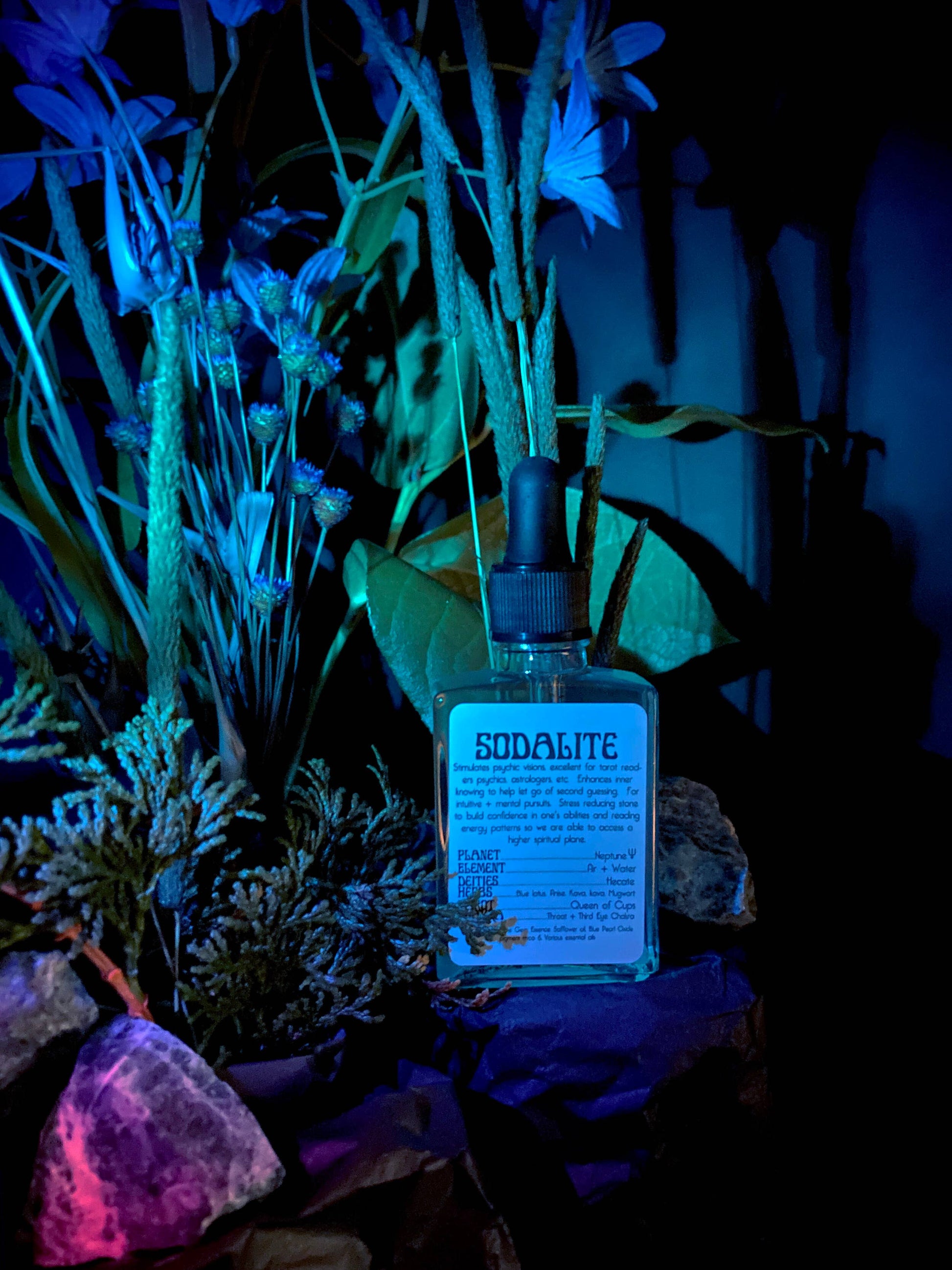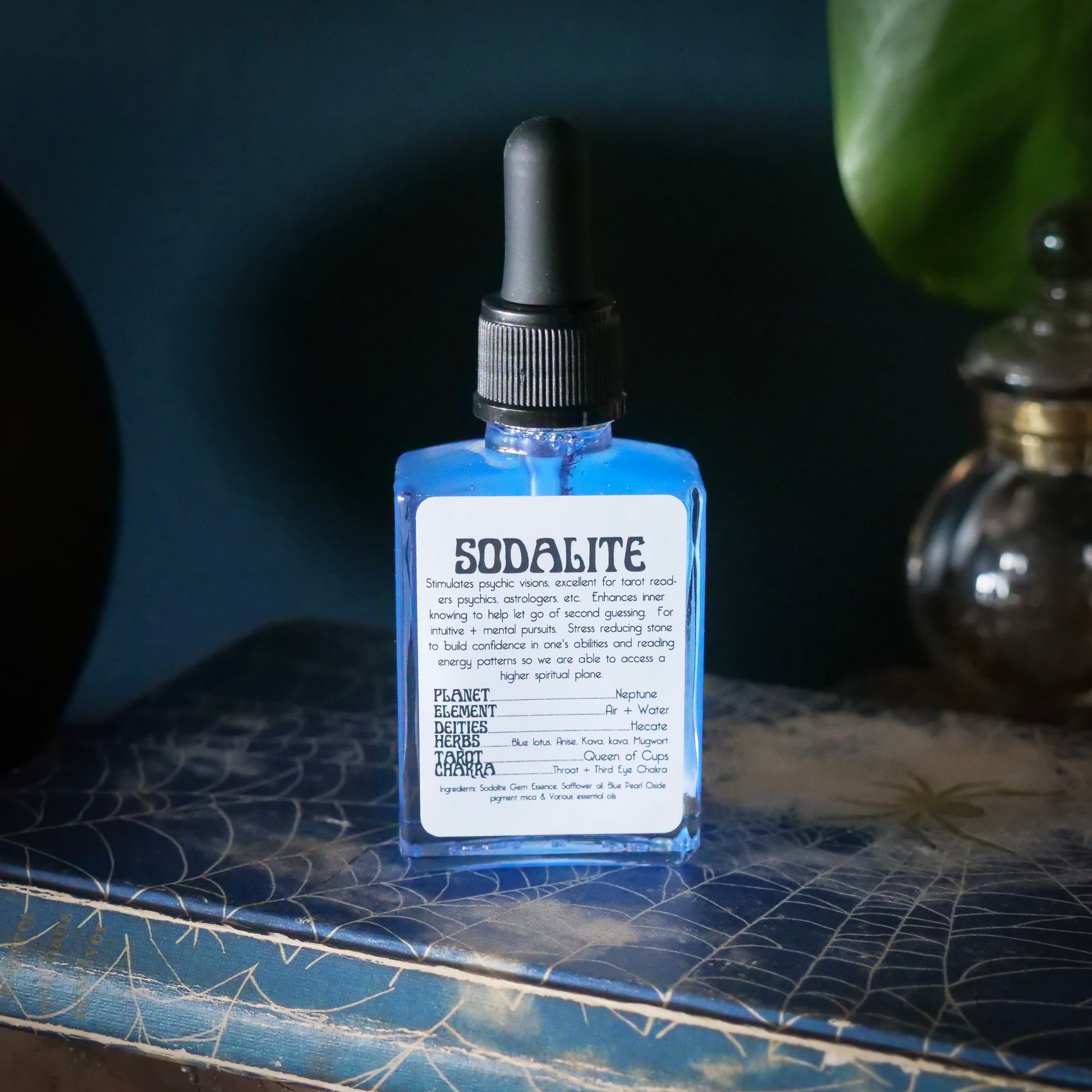 Ingredients: Sodalite gem essence, Safflower oil, Sky blue matte pigment oxide mica, & Essential oils