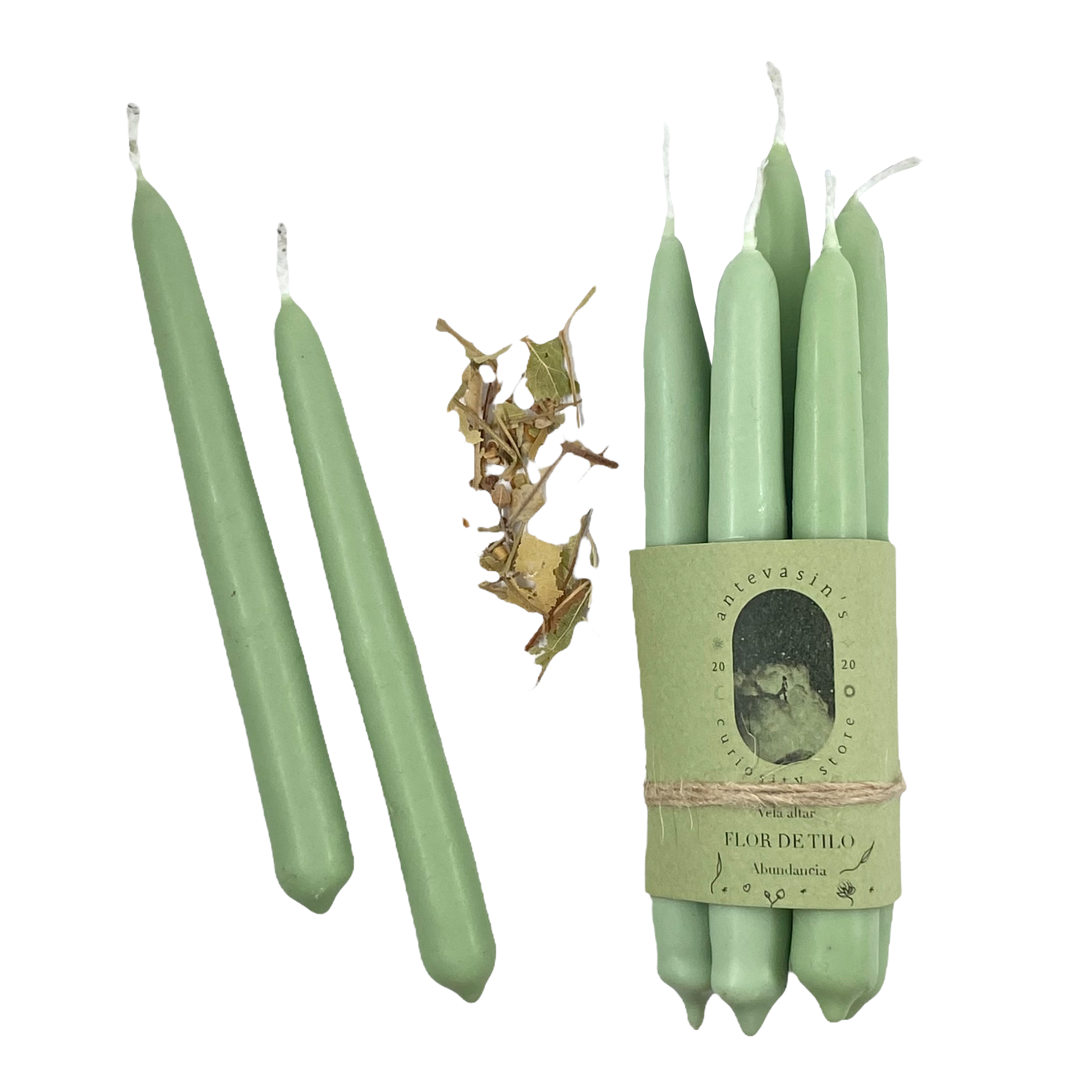Whatever it is, the smell stays sweet and soft inside the candle, and just by touching it you can feel the Linden blossom. There are smells that work better, and others that have a little harder time feeling in the candle. This candle is designed for rituals that promote the energy of abundance and the energy of money. The green candle is by pagan tradition a great ally if we need to do a ritual to let prosperity flow in our home, business or project. For when you want to ask to heal family patterns or beliefs regarding money or even to “energetically” clean bills.