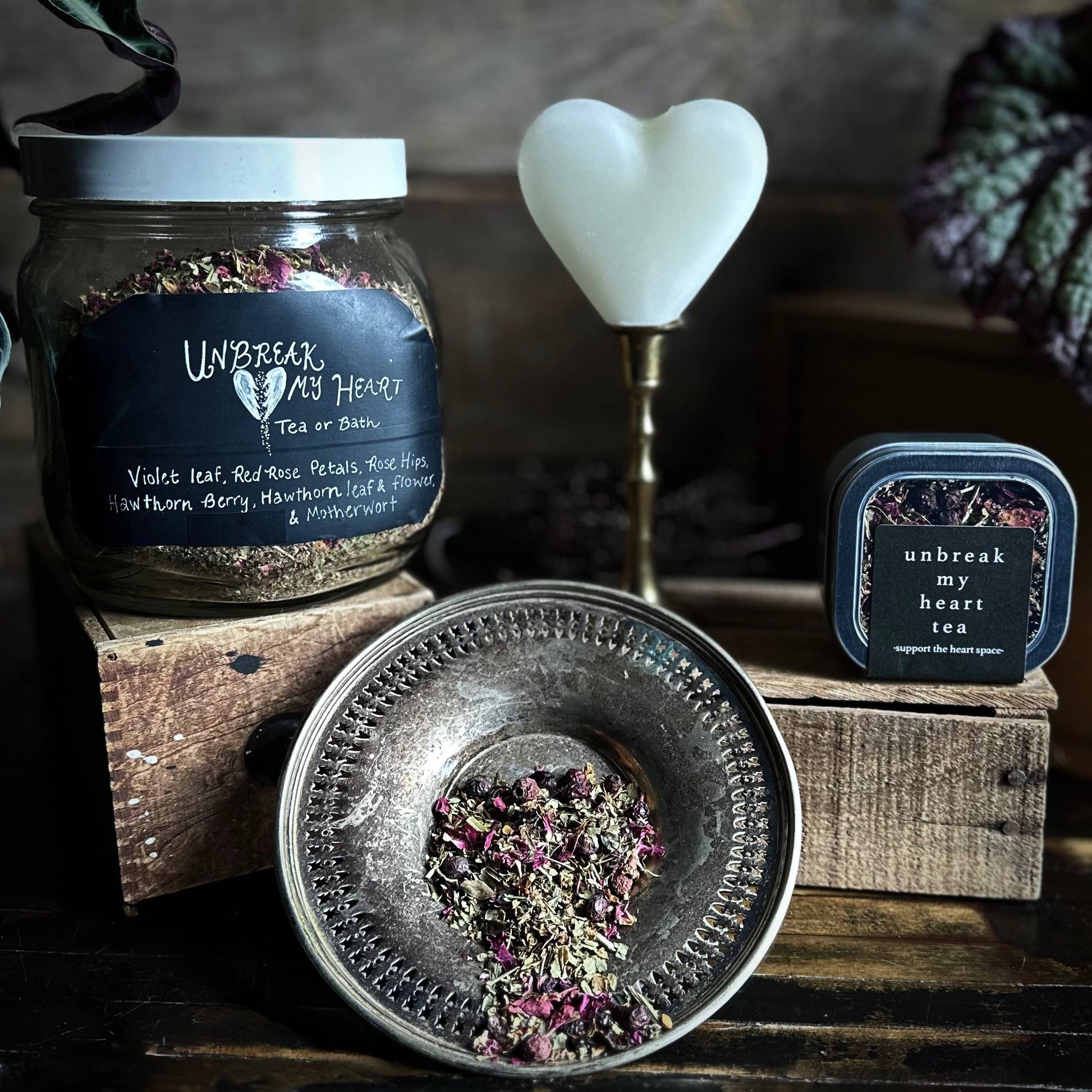 Handcrafted in Denver, Unbreak My Heart Tea or Bath is made with intention for ritual use for healing grief or loss, mending a broken heart, and healing love endings.