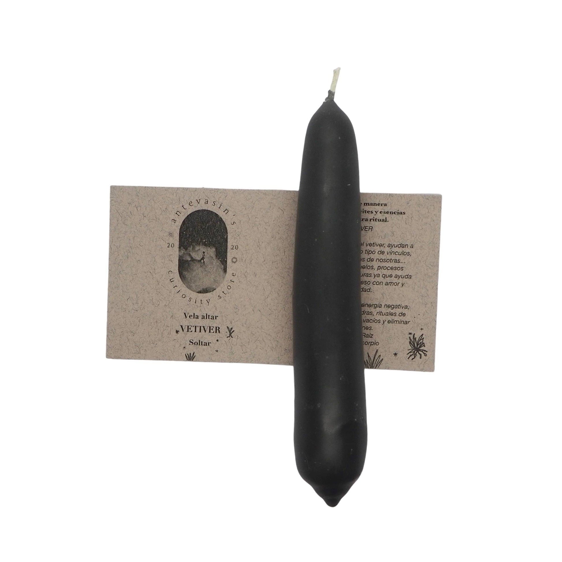 The black candle is by pagan tradition an enormous energy cleanser and a great ally of protection when it comes to doing our rituals. Prepared with Vetiver essential oil, a sacred plant that is said to “open paths” and keeps evil away from the space in which it is used. This candle has black Mica powder, to give a bright touch to the heart of the candle, symbolizing light.