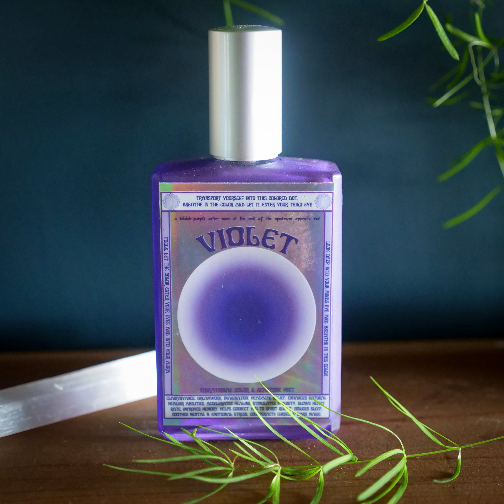 This mist is to be used in assistance of visual color healing and meditation. The labels are made as a visual guide to help assist in bringing the color in though the eyes, and to help with color breathing, light therapy, working with the chakras or crystal healing. To emphasize this color you can, eat foods that are violet, bathing in this color, drinking solar charged water from a colored bottle or filter, wearing tinted glasses or clothing, gemstones, candles, or Jazz music which is said to be associated with Violet as well as the sound “OM.”