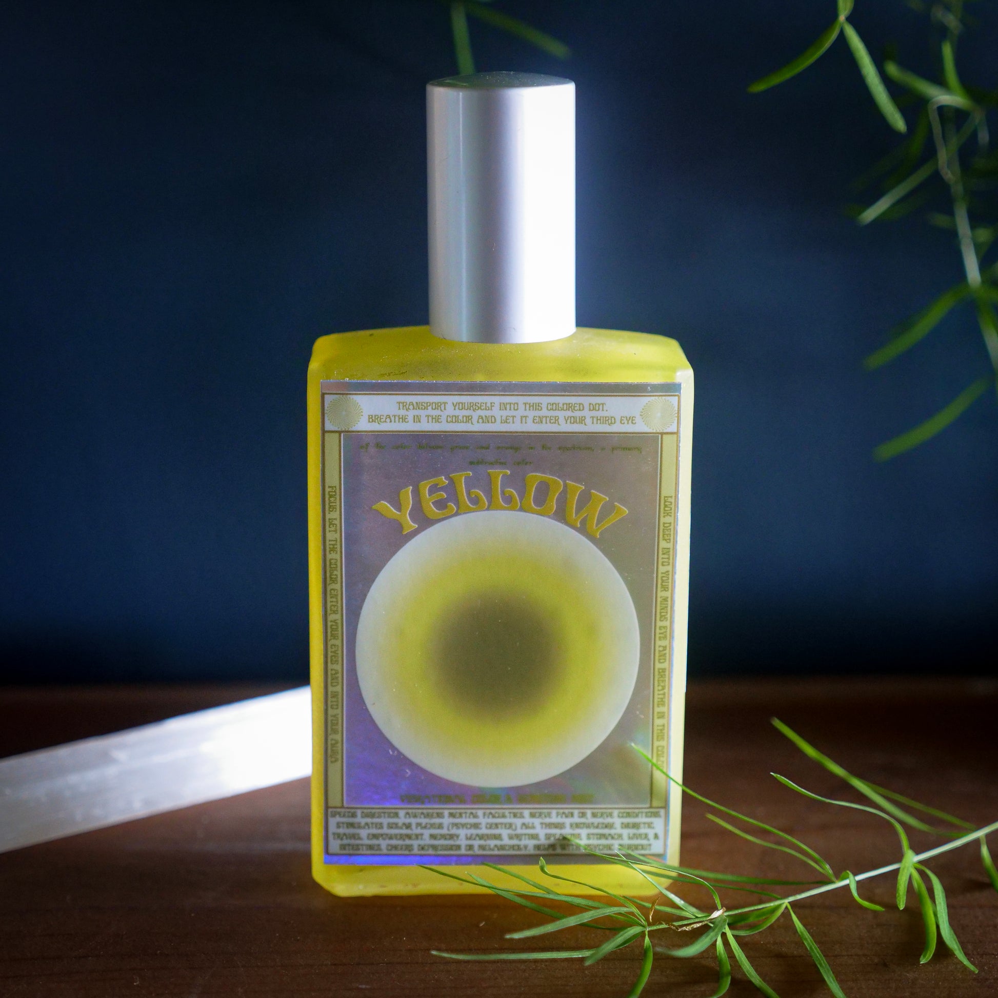 This mist is to be used in assistance of visual color healing and meditation. The labels are made as a visual guide to help assist in bringing the color in though the eyes, and to help with color breathing, light therapy, working with the chakras or crystal healing. To emphasize this color you can: eat foods that are yellow, bathe in this color, drink solar charged water from a colored bottle or filter, and wear tinted glasses or clothing. Other enhancement include using gemstones, candles, or listening to the sound of a wooden flute or the music note A#.